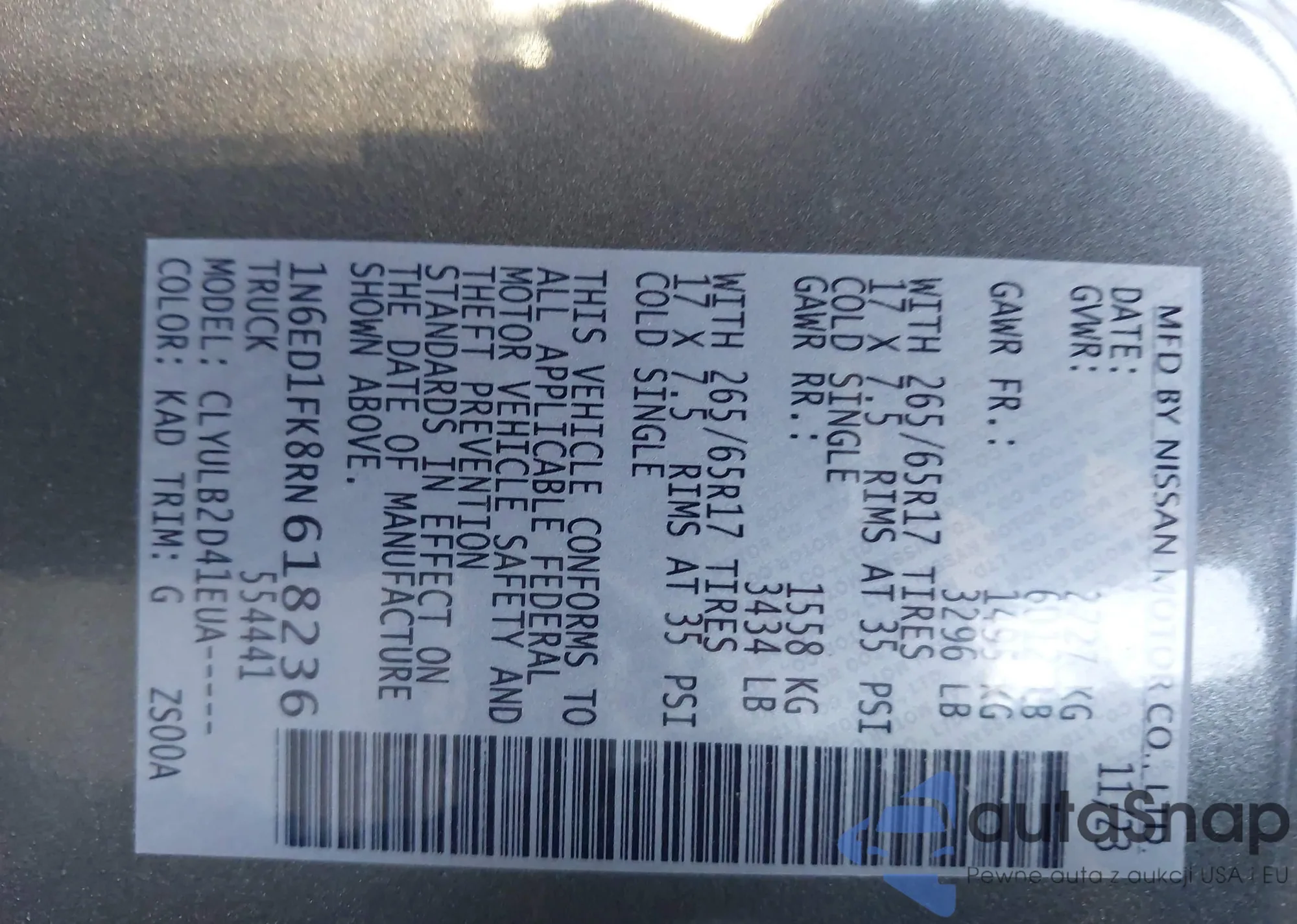 • VIN 1N4AL2AP3BN509417