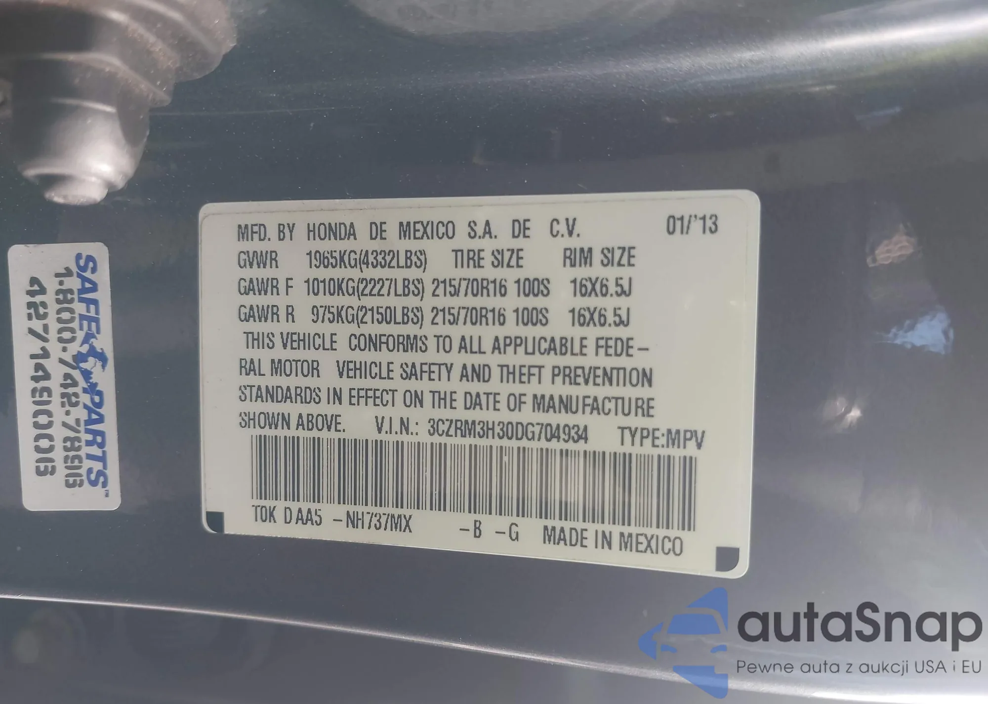 • VIN 5FNRL6H70MB023353