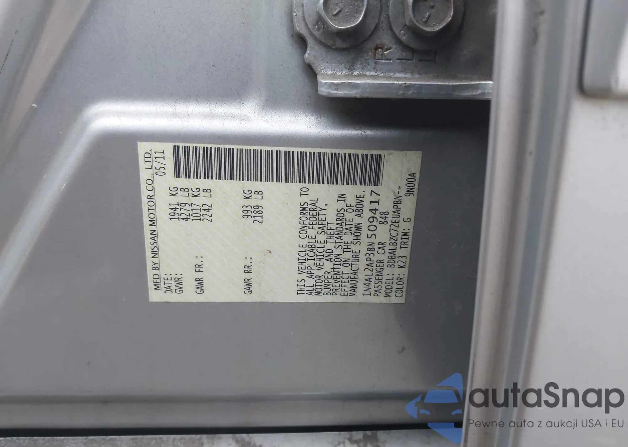 LOT: 43653237 VIN: 1N4AL2AP3BN509417