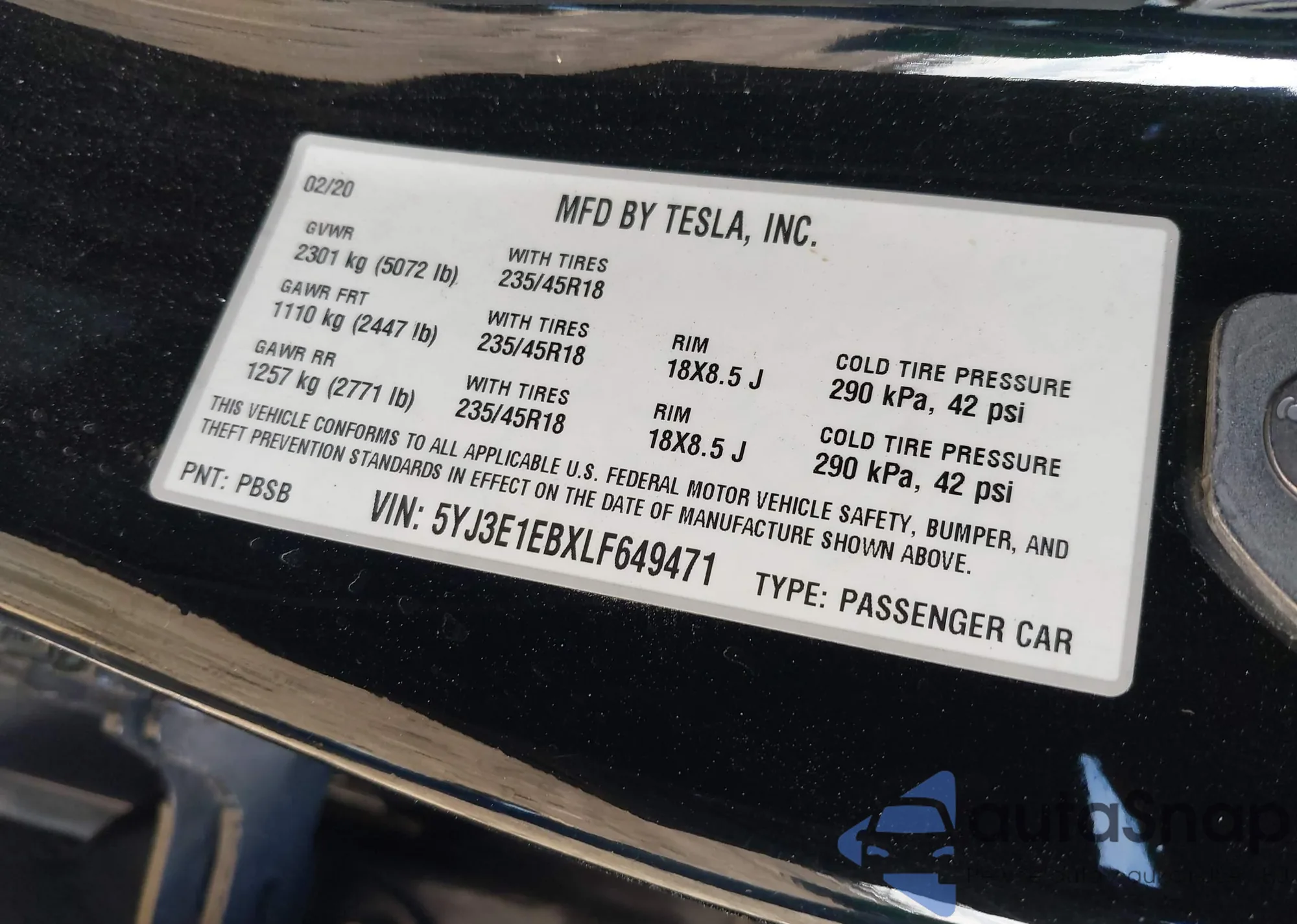 • VIN 5YJ3E1EBXLF649471