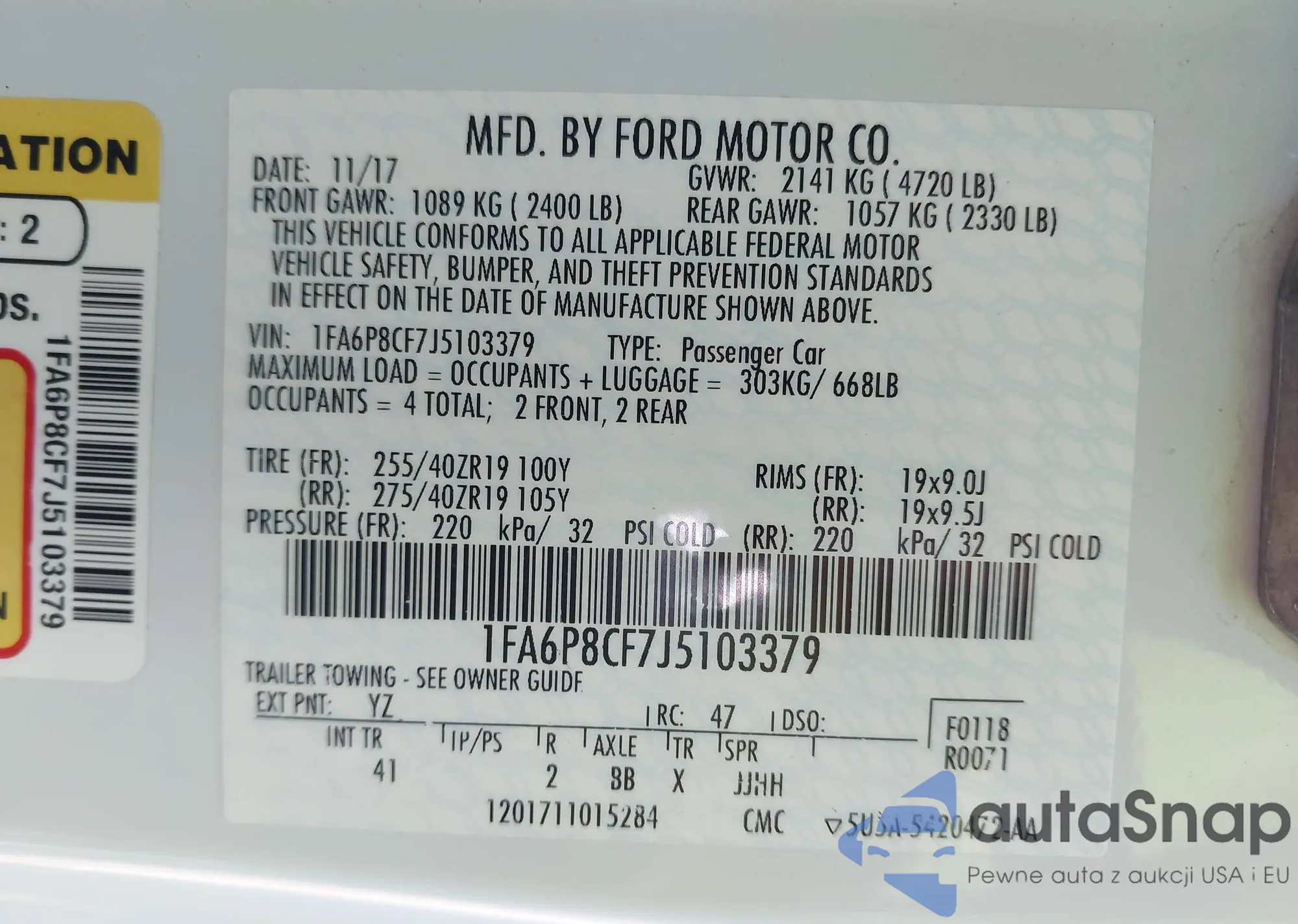 • VIN 1FA6P8CF7J5103379