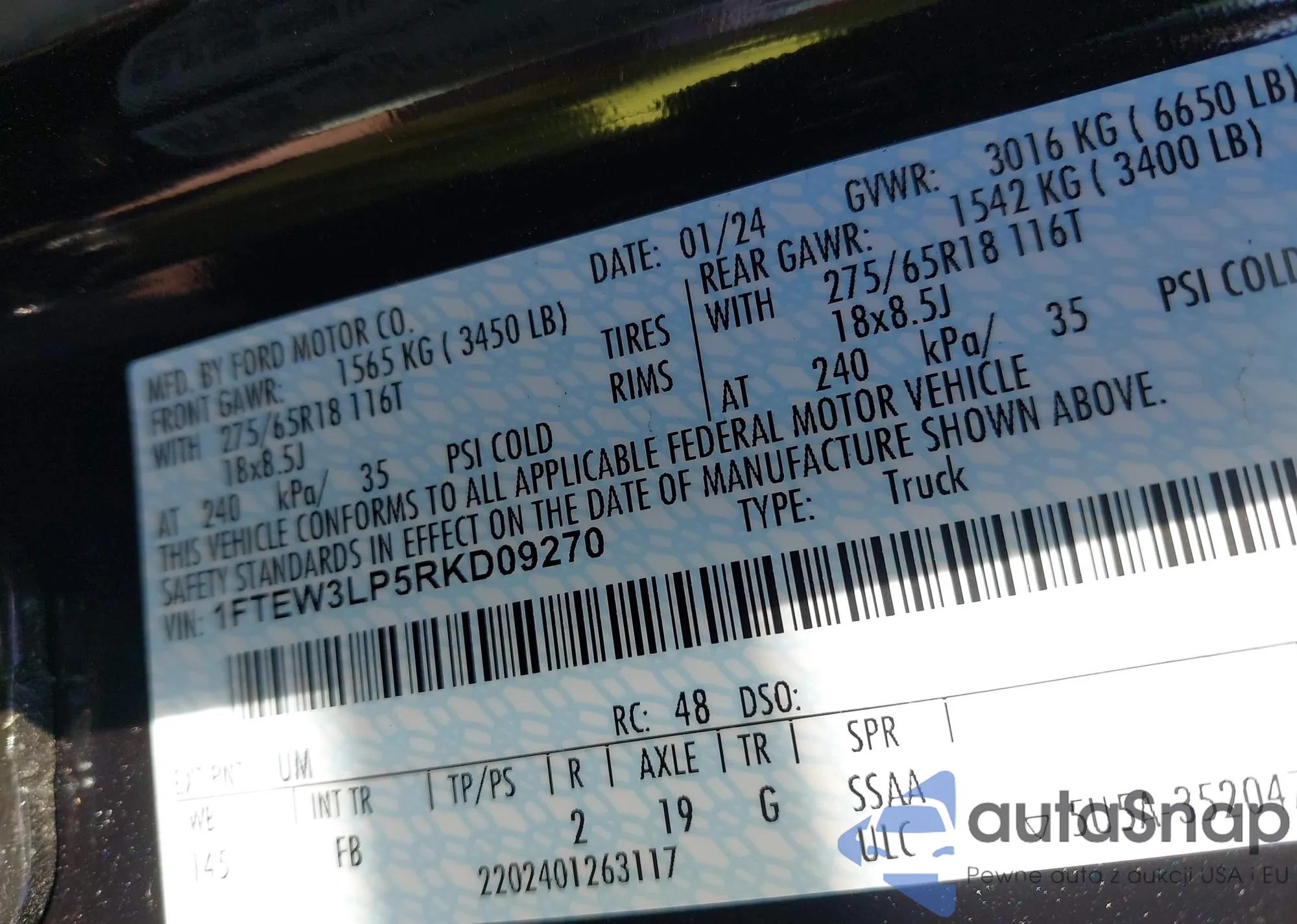 LOT: 43365543 VIN: 1FTEW3LP5RKD09270