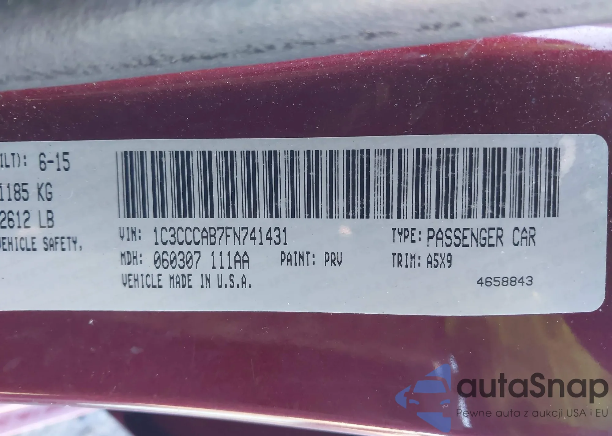• VIN 1C3CCCAB7FN741431