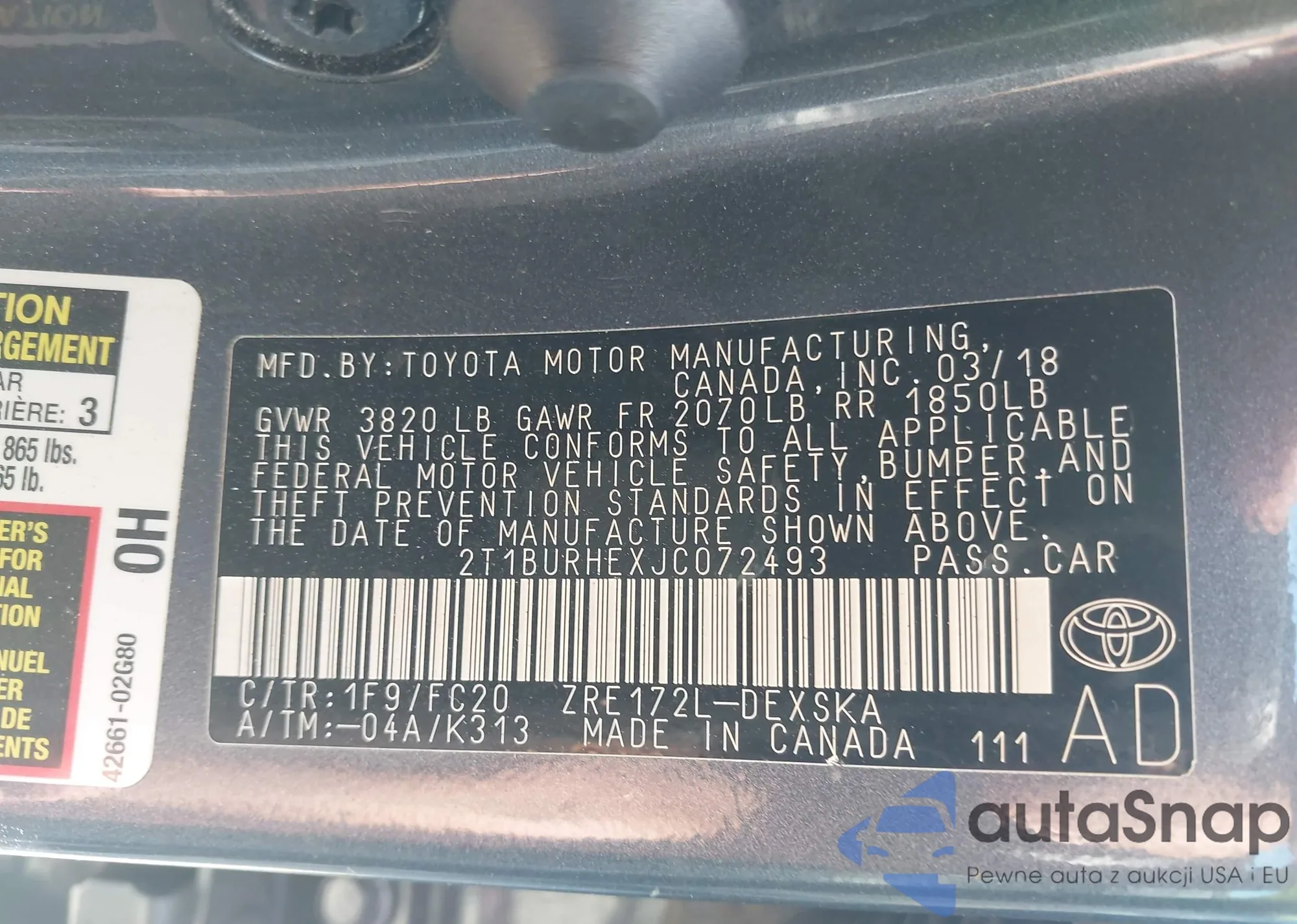 • VIN 2T1BURHEXJC072493