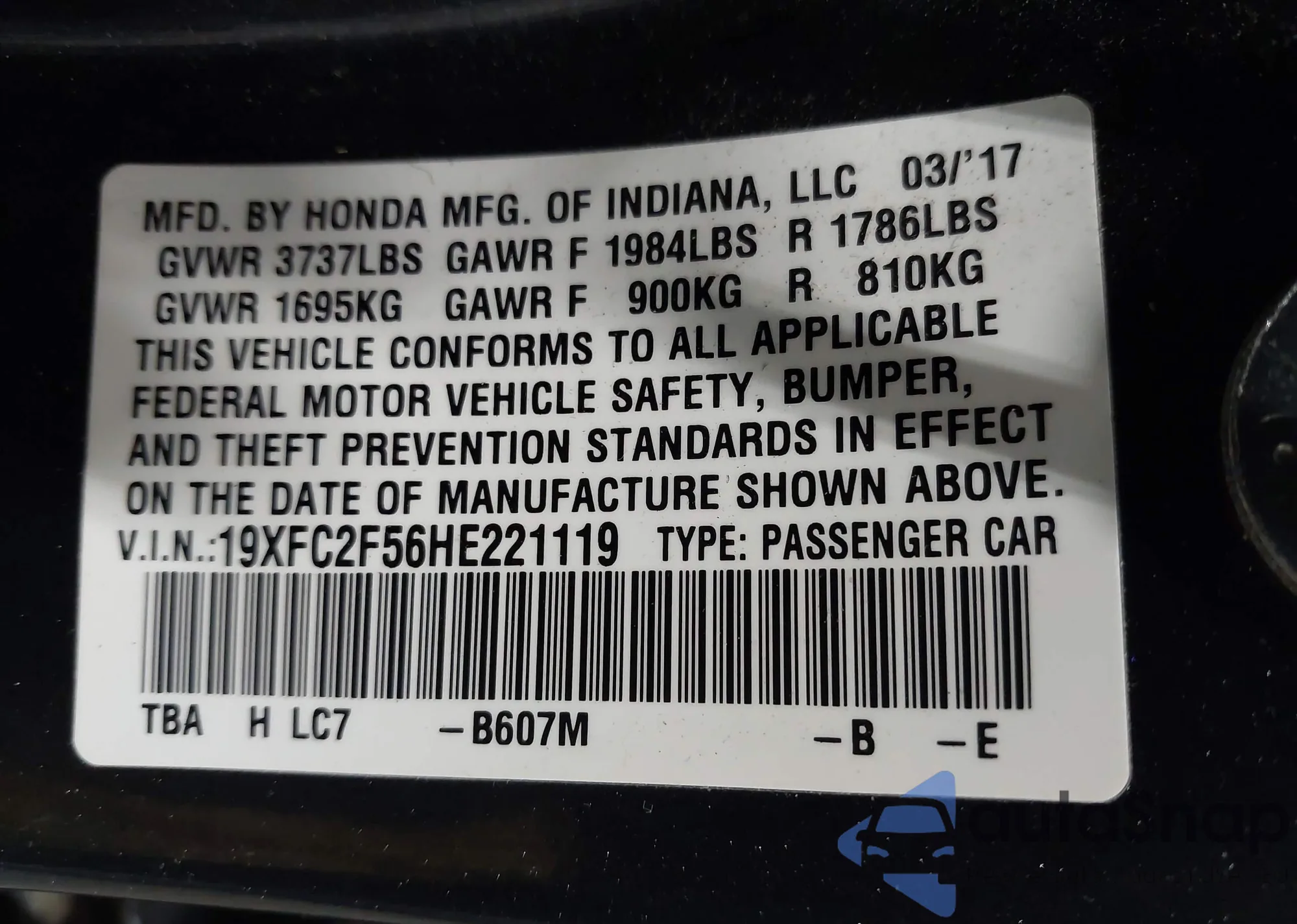 • VIN 19XFC2F56HE221119
