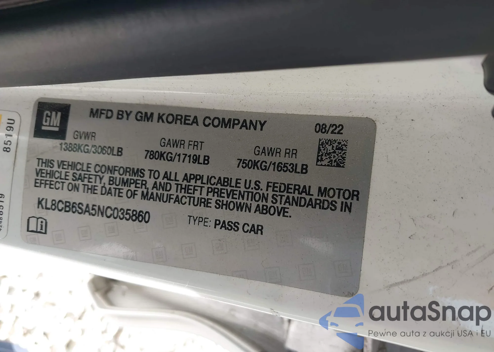 • VIN KL8CB6SA5NC035860