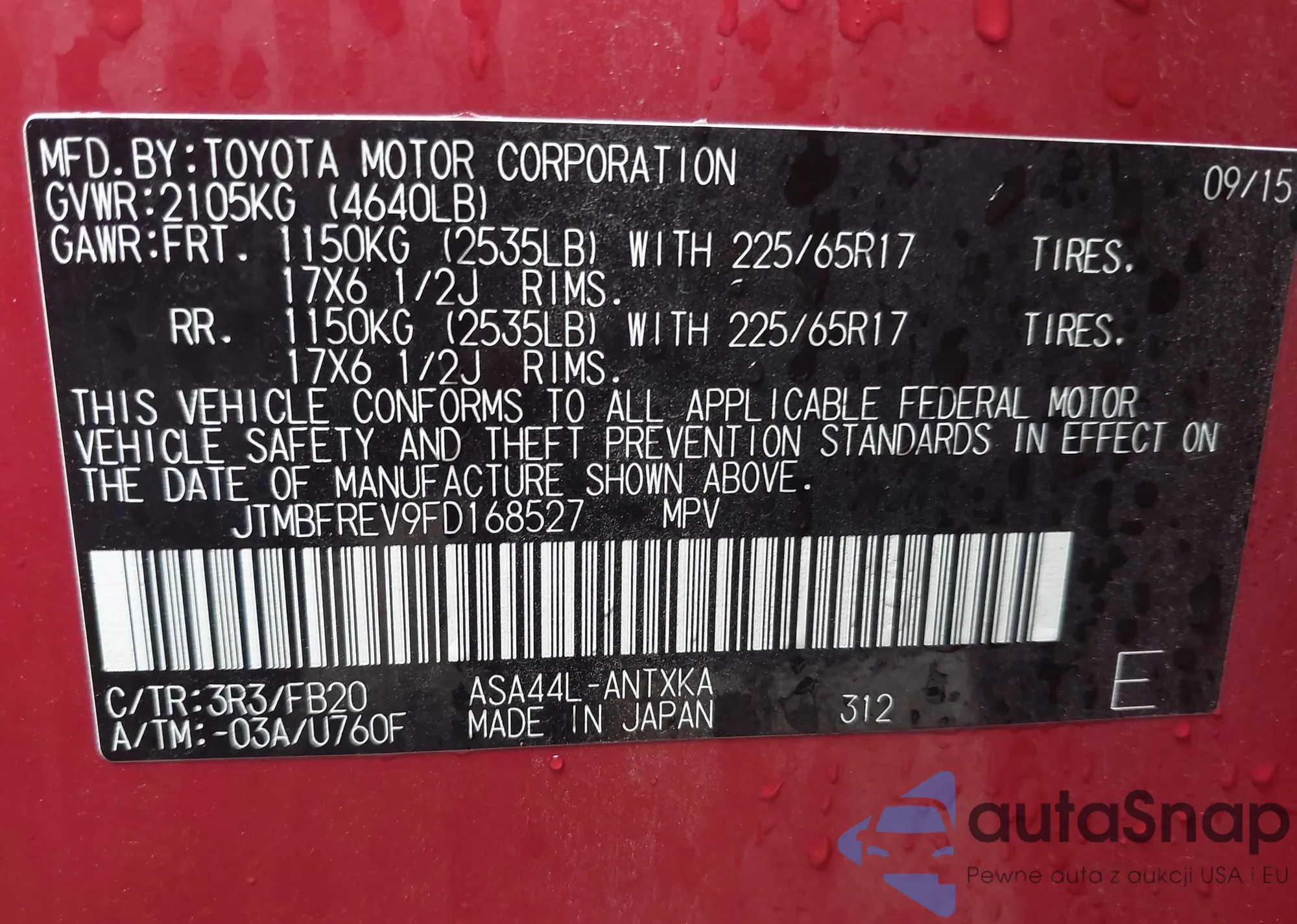 • VIN JTMBFREV9FD168527
