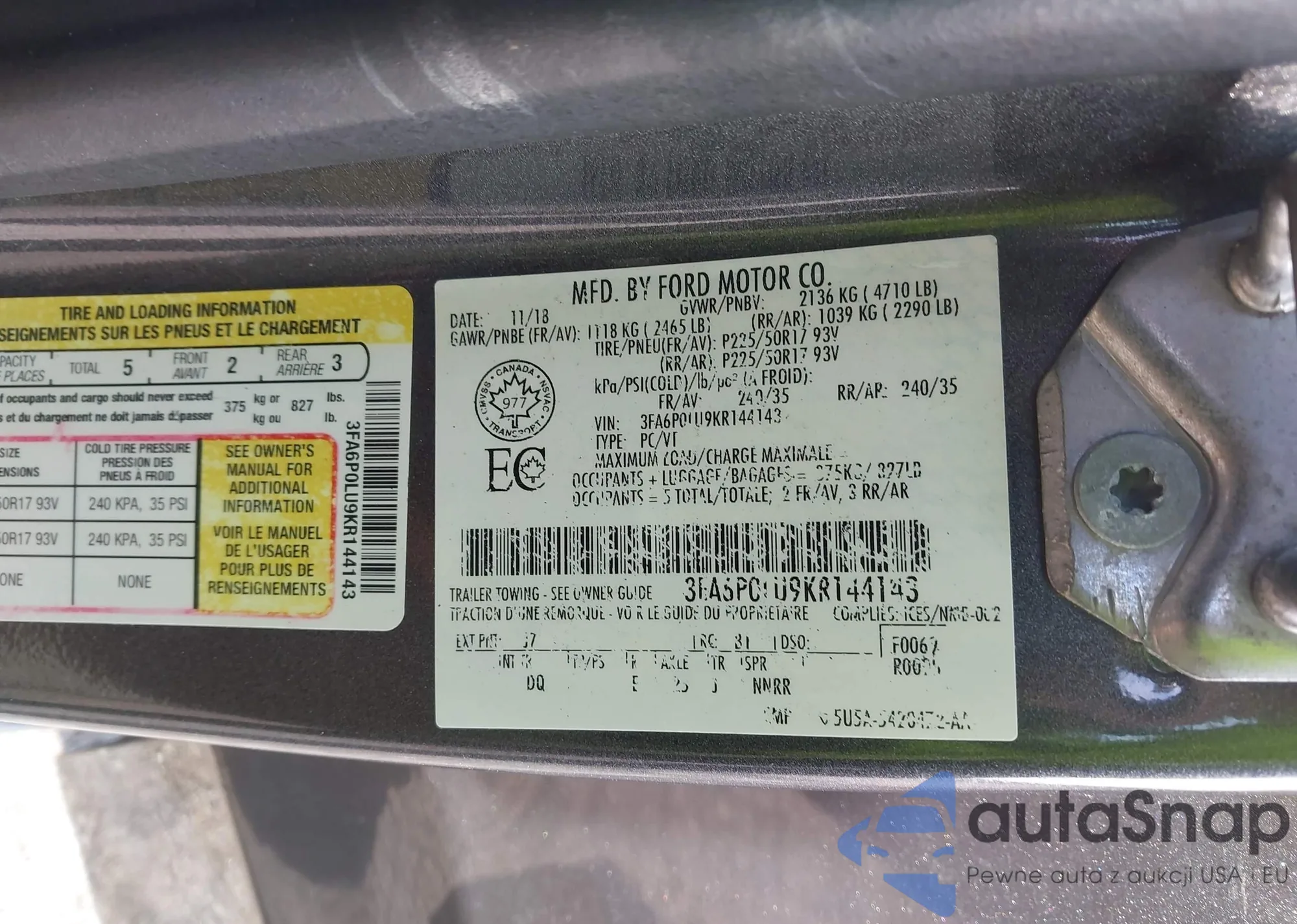 • VIN 3FA6P0LU9KR144143