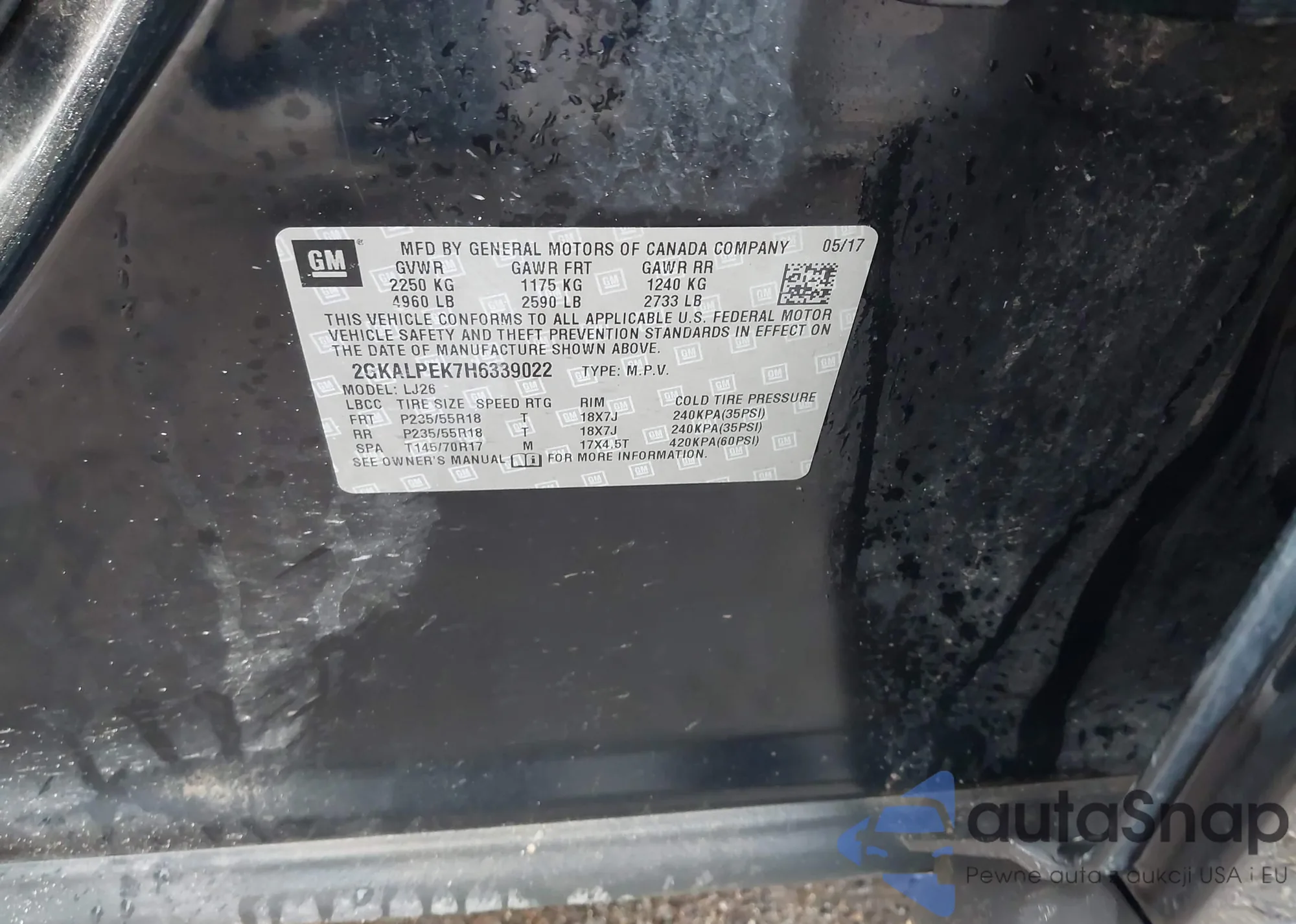 • VIN 2GKALPEK7H6339022