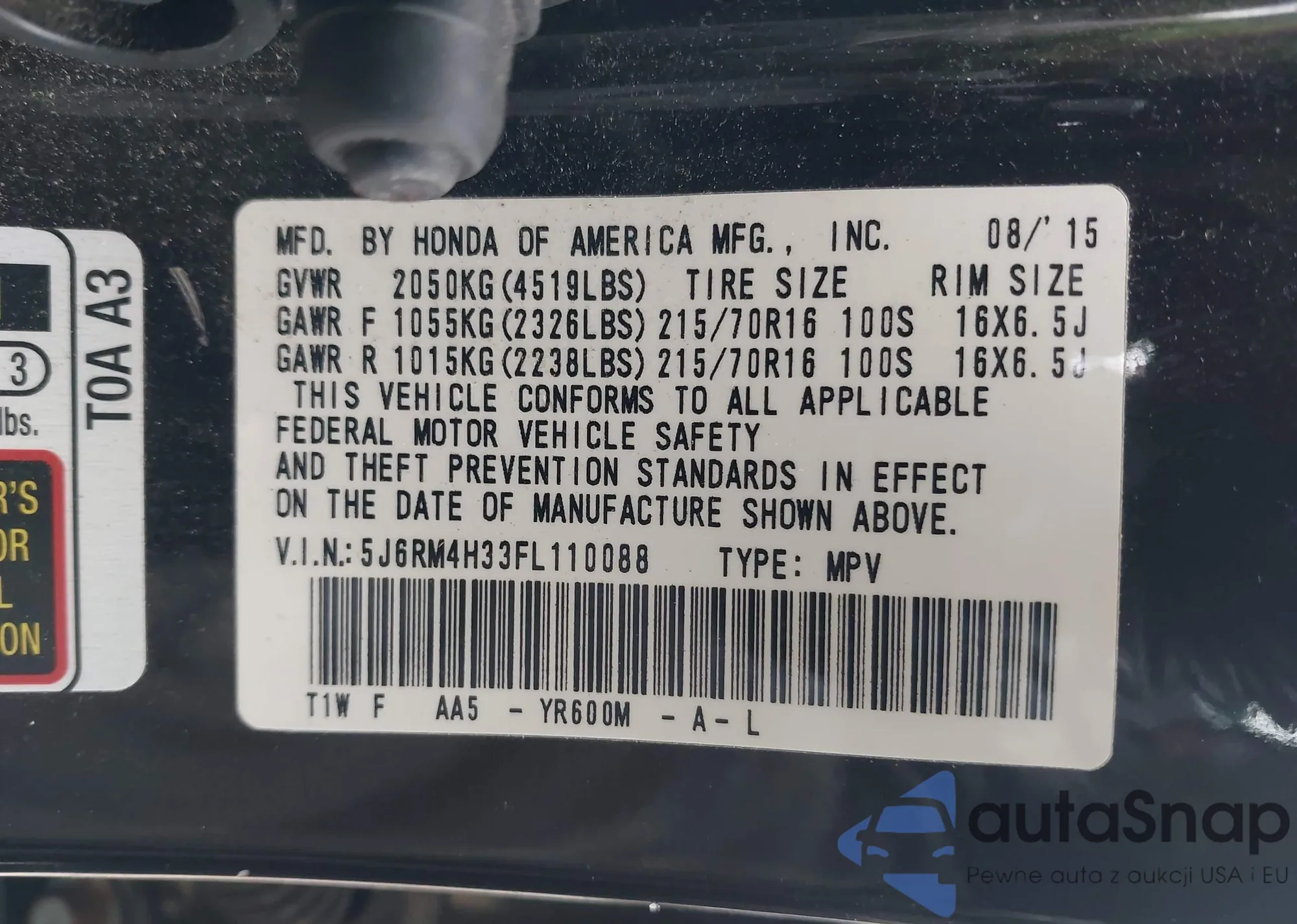 • VIN 5J6RE4H51BL098841