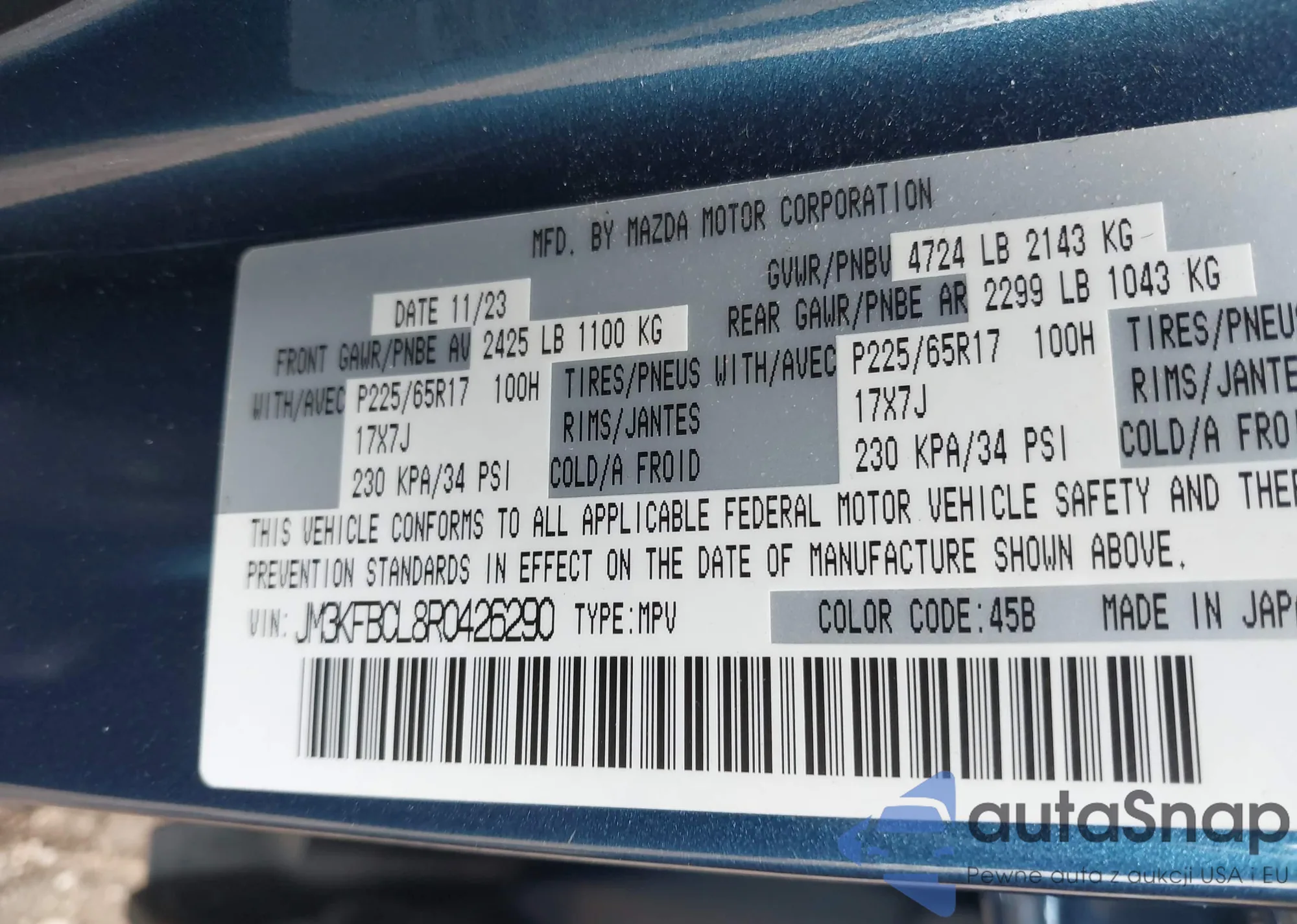 • VIN 3KPFT4DE7SE043923