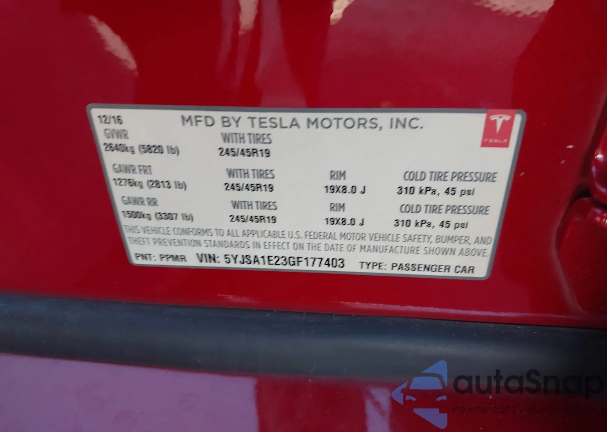 • VIN 5YJSA1E23GF177403