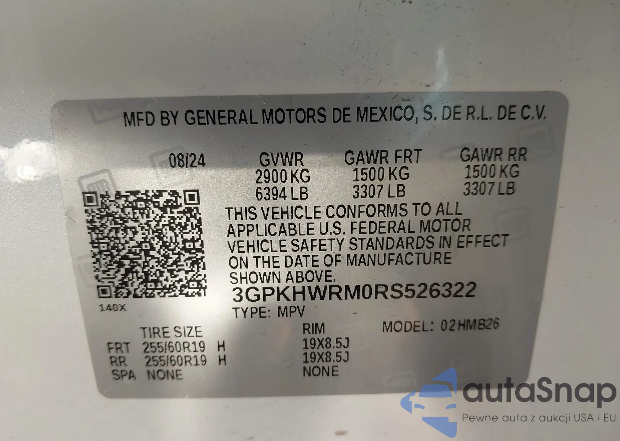 LOT: 43294541 VIN: 3GPKHWRM0RS526322