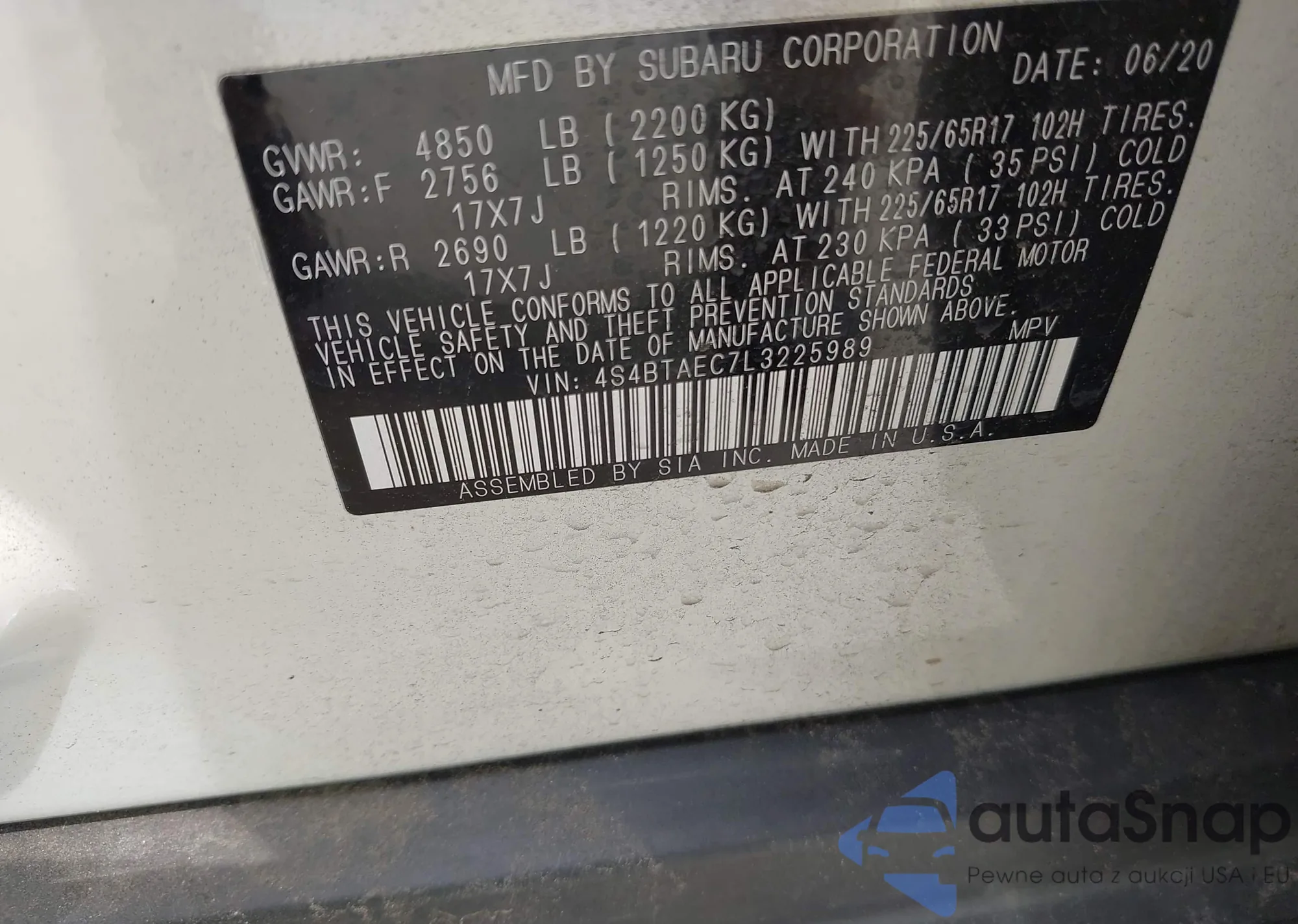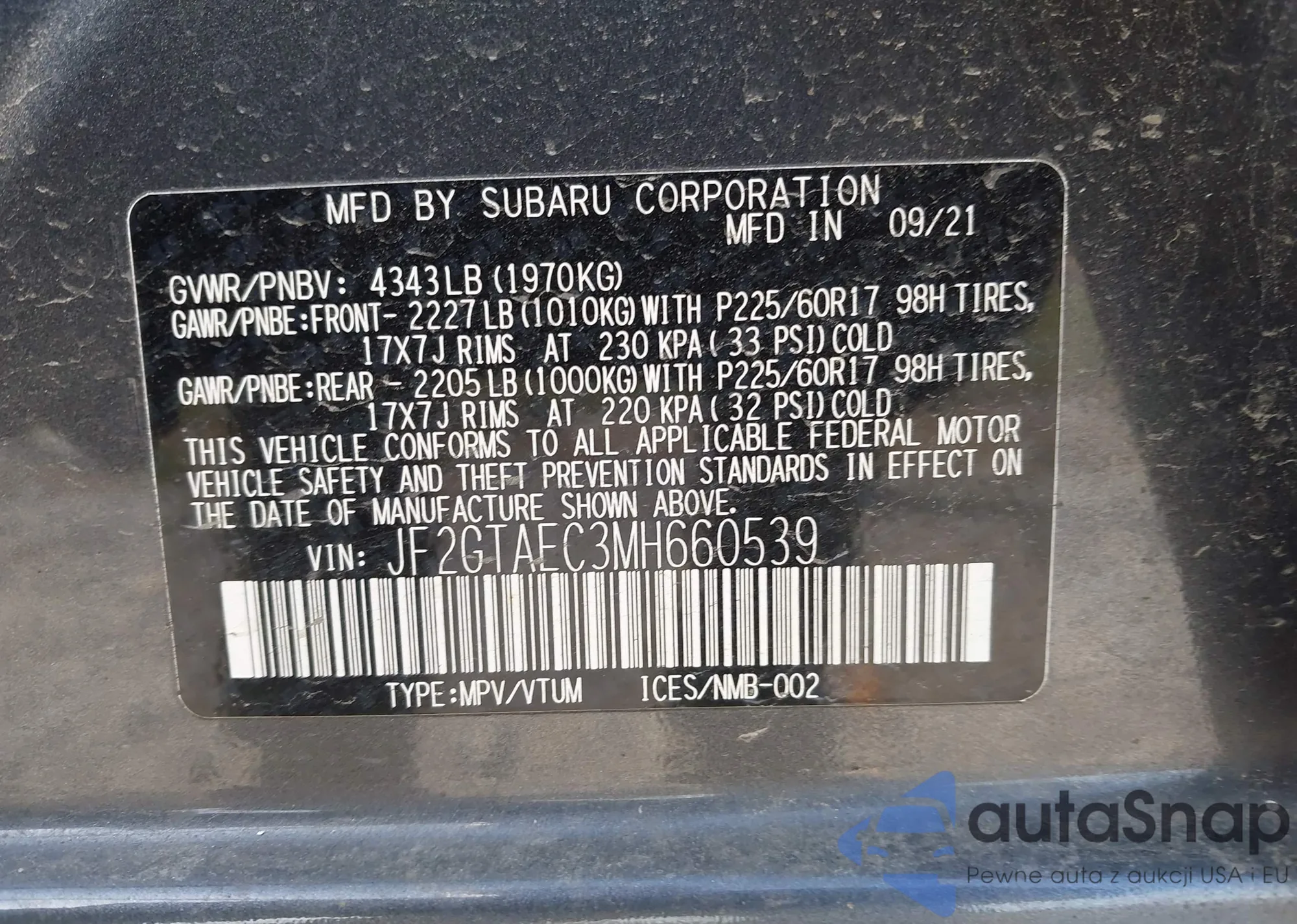 • VIN JF2GTAEC3MH660539