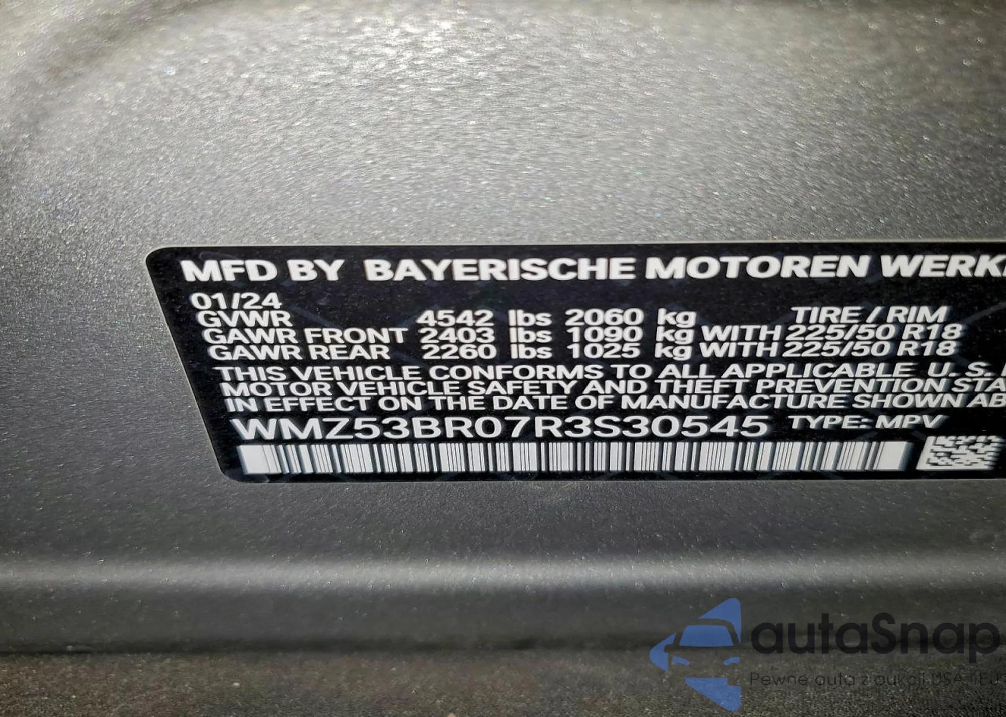 LOT: 96215225 VIN: WMZ53BR07R3S30545