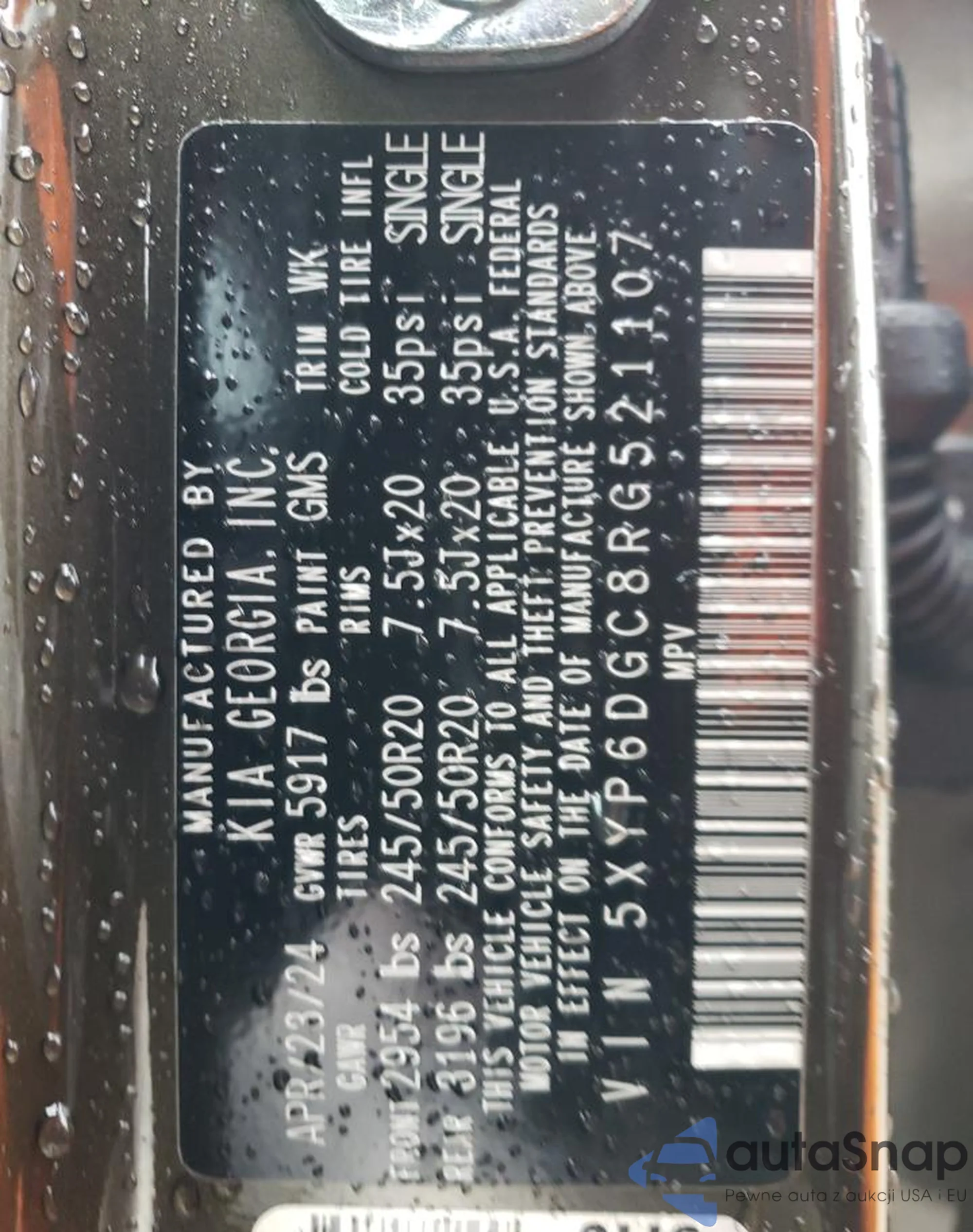• VIN 5XYP6DGC8RG521107