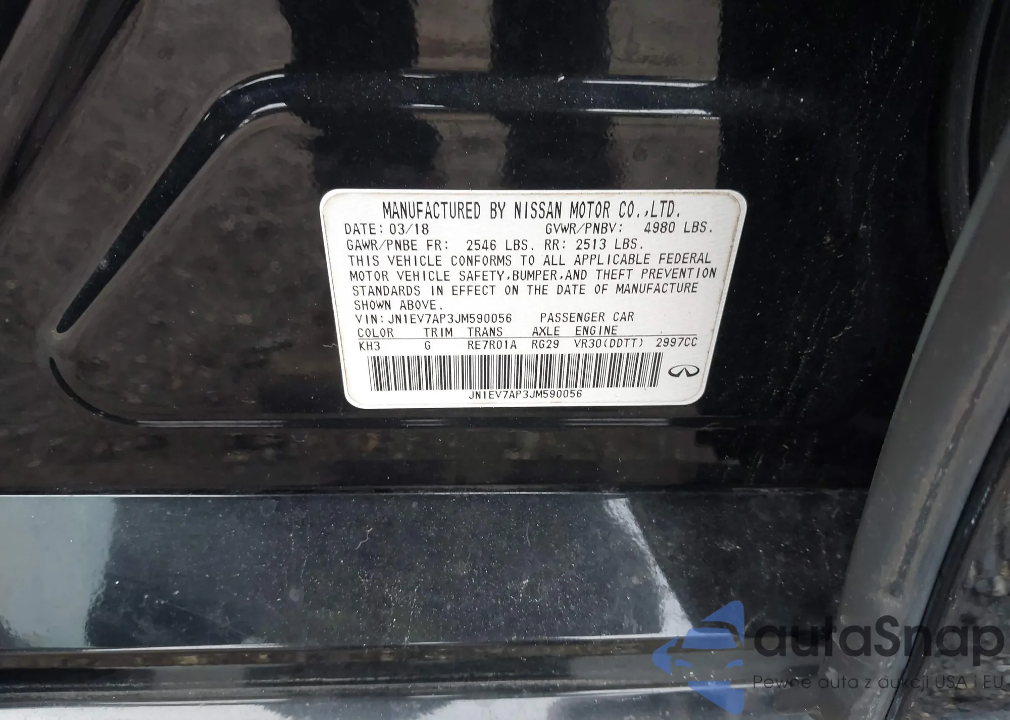 LOT: 43911023 VIN: JN1EV7AP3JM590056