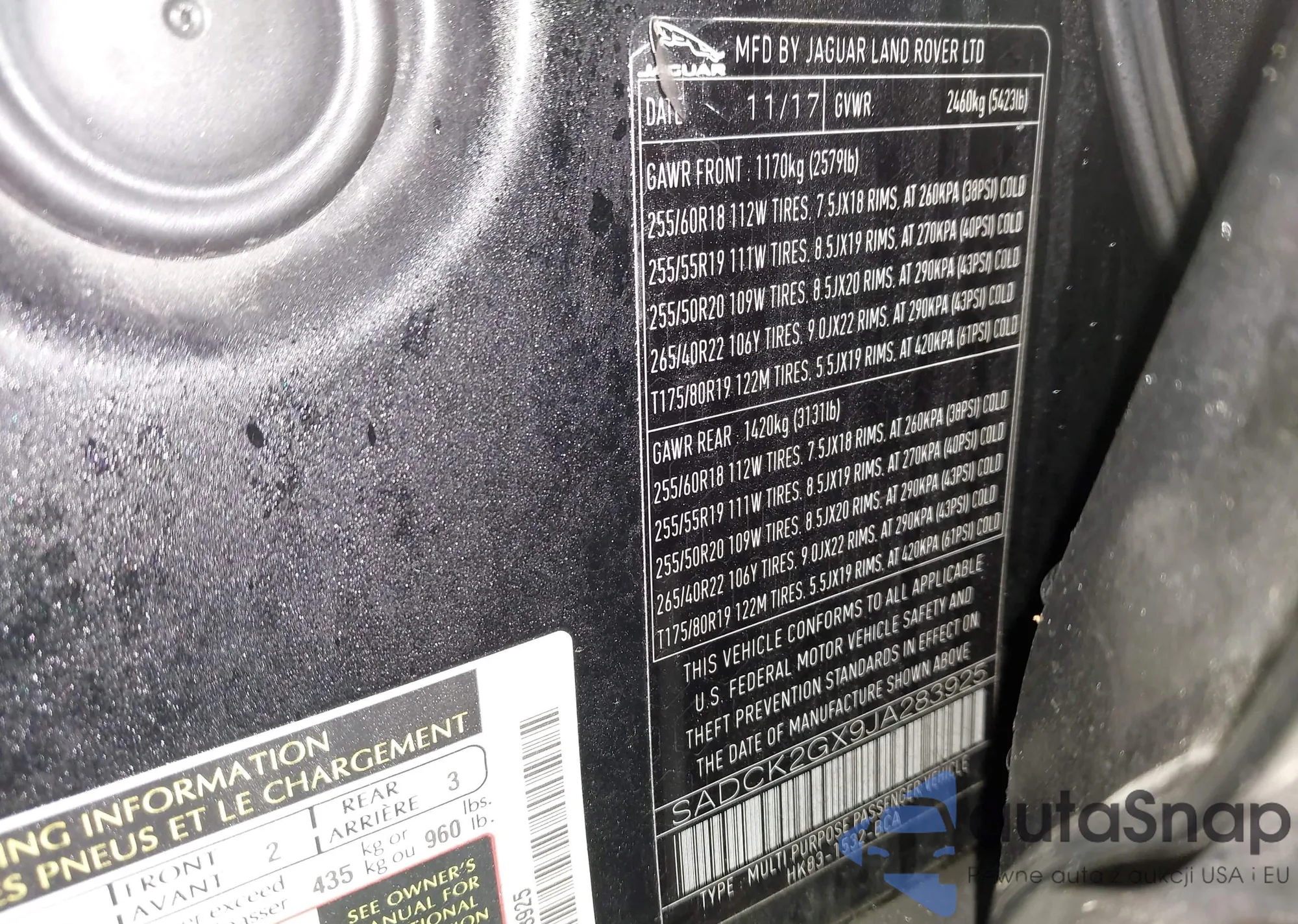 • VIN SADCK2GX9JA283925