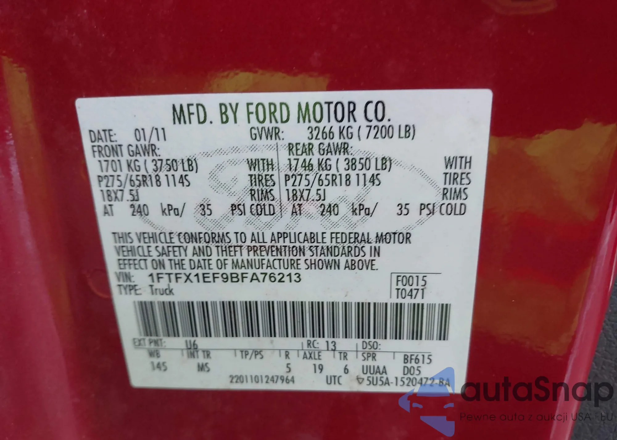 • VIN 1FTFX1EF9BFA76213