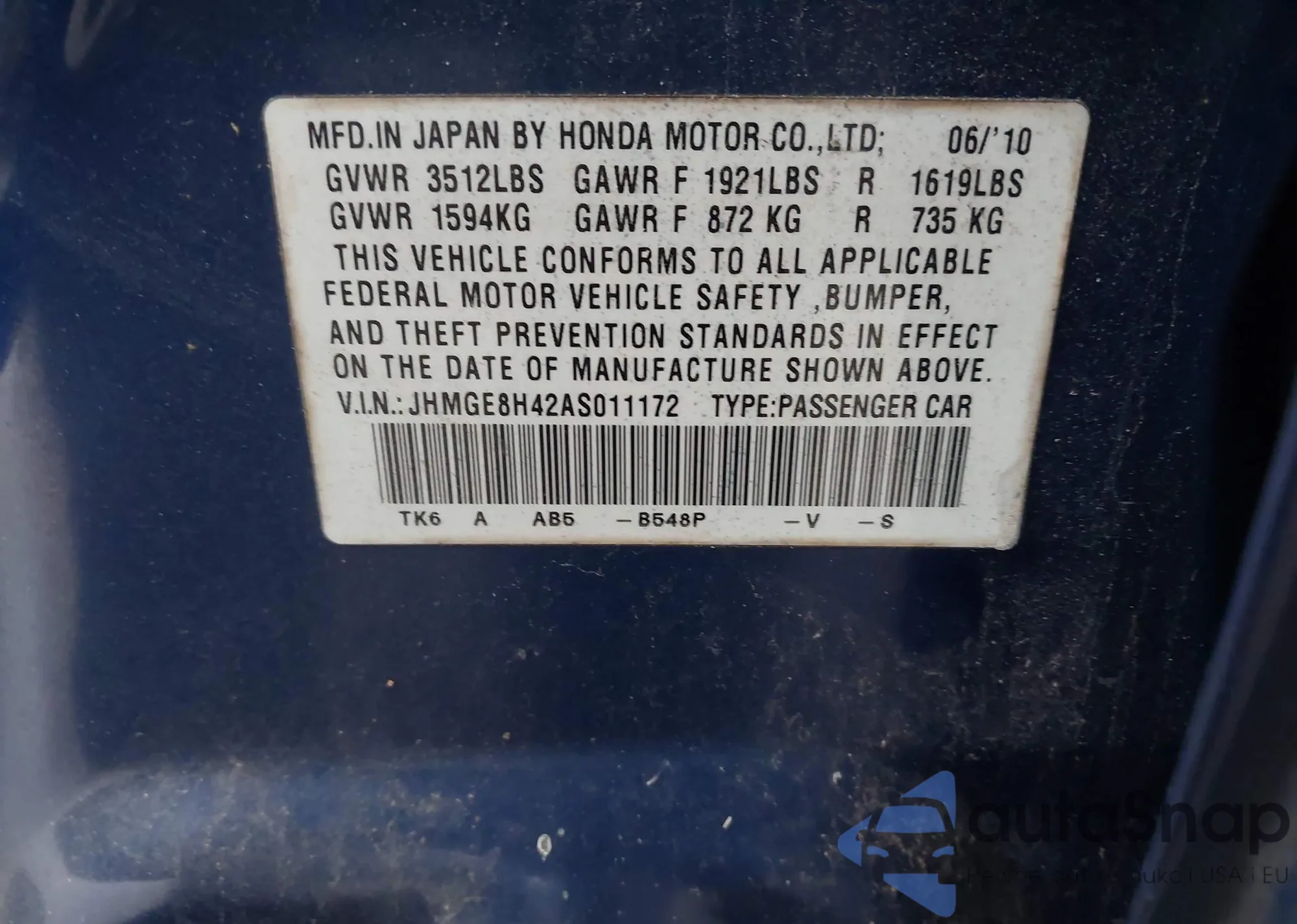 • VIN JHMGE8H42AS011172