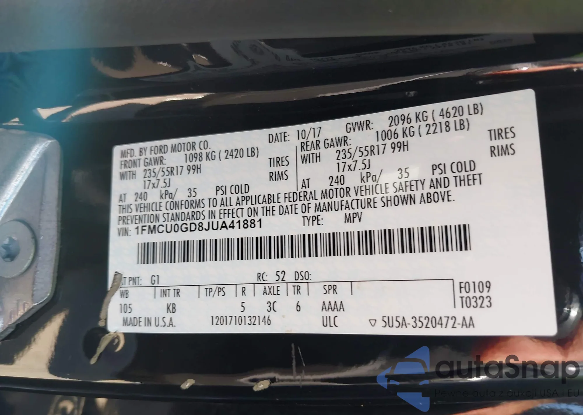 • VIN 1FMCU0GD8JUA41881