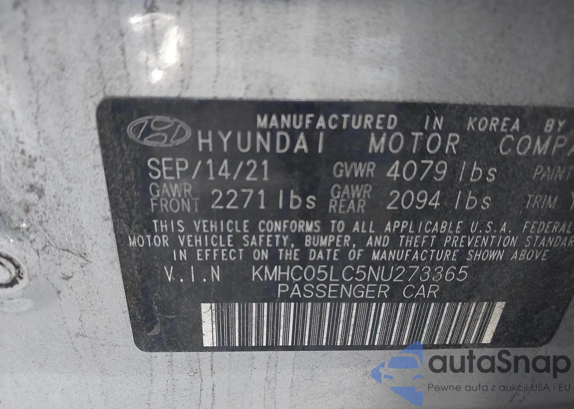 LOT: 43579464 VIN: KMHC05LC5NU273365
