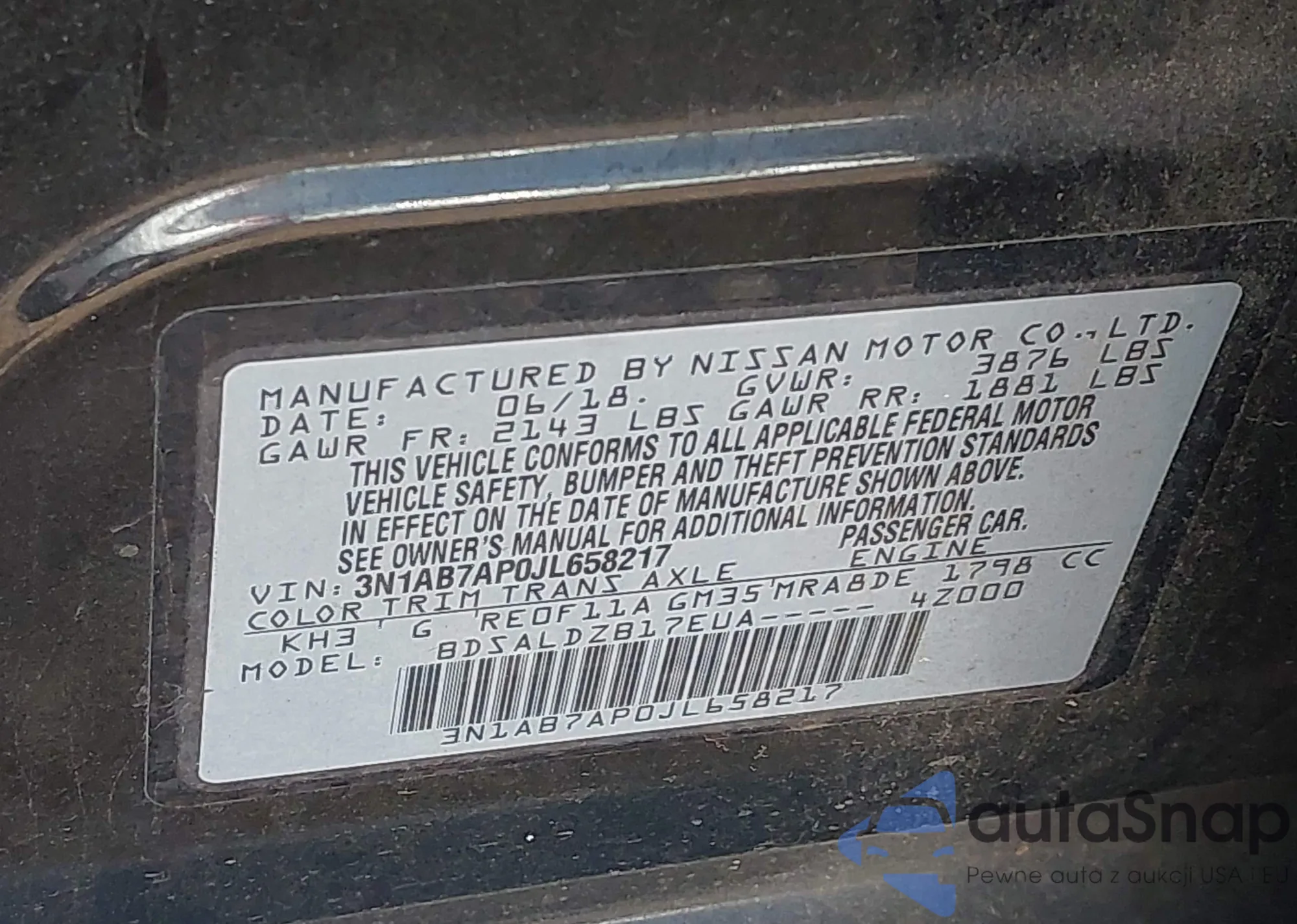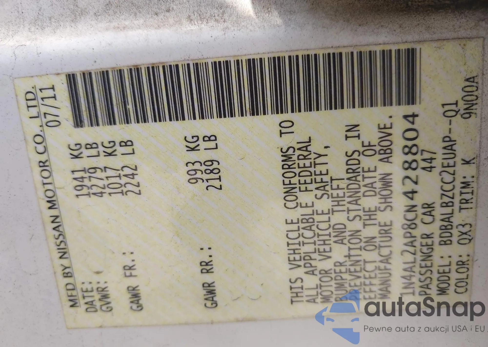LOT: 43150502 VIN: 1N4AL2AP8CN428804