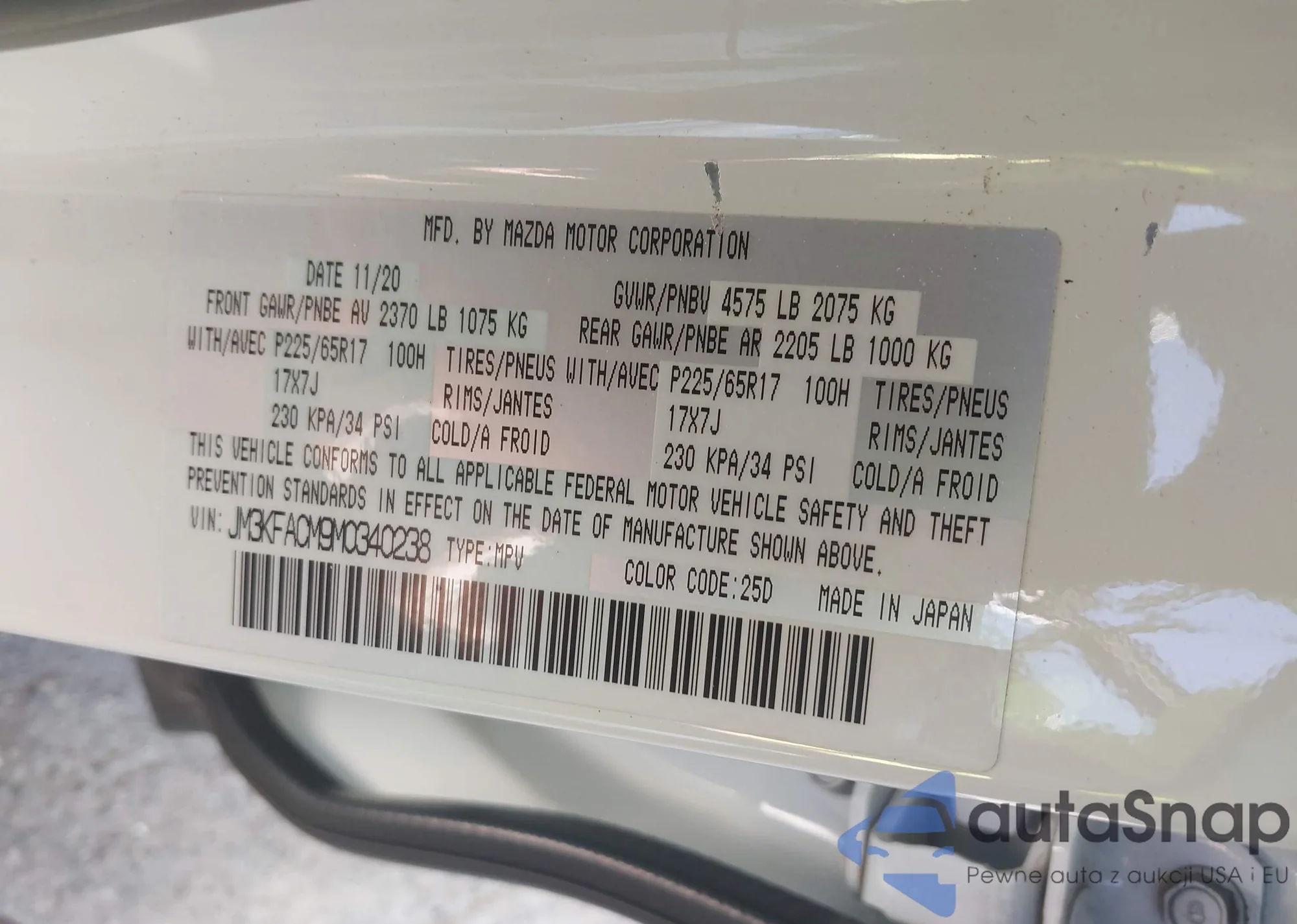 LOT: 43157150 VIN: JM3KFACM9M0340238