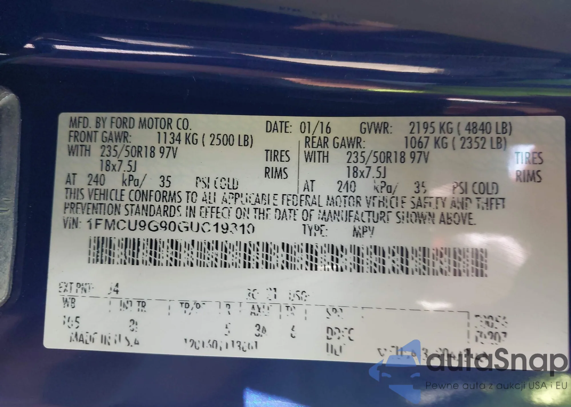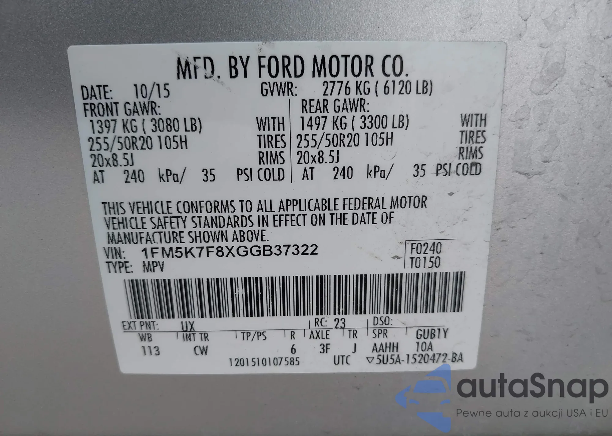 • VIN 1FM5K7F8XGGB37322