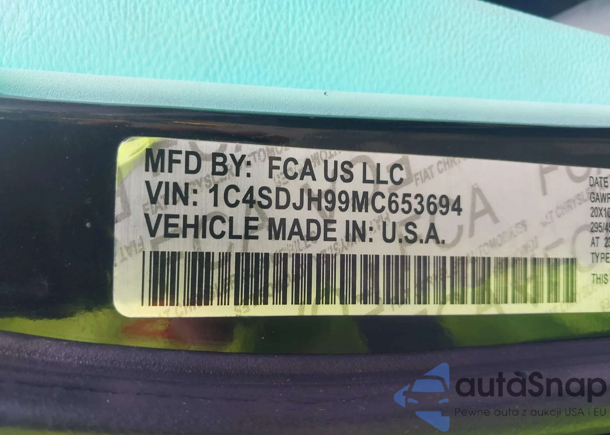 LOT: 43103765 VIN: 1C4SDJH99MC683083