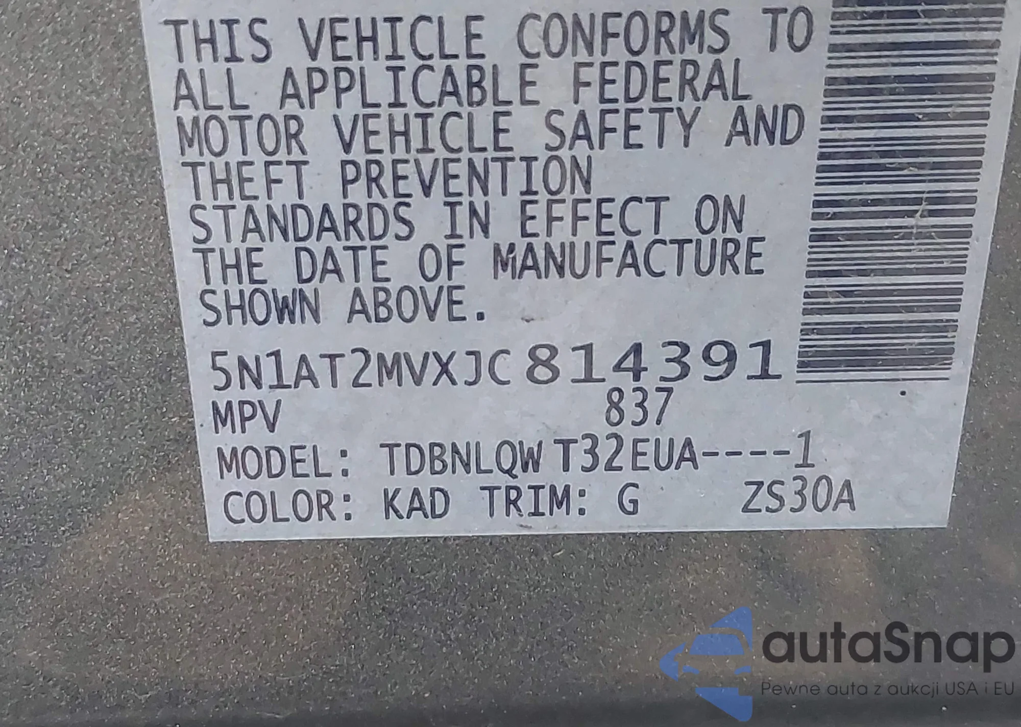 • VIN 5J8YD4H56JL024111