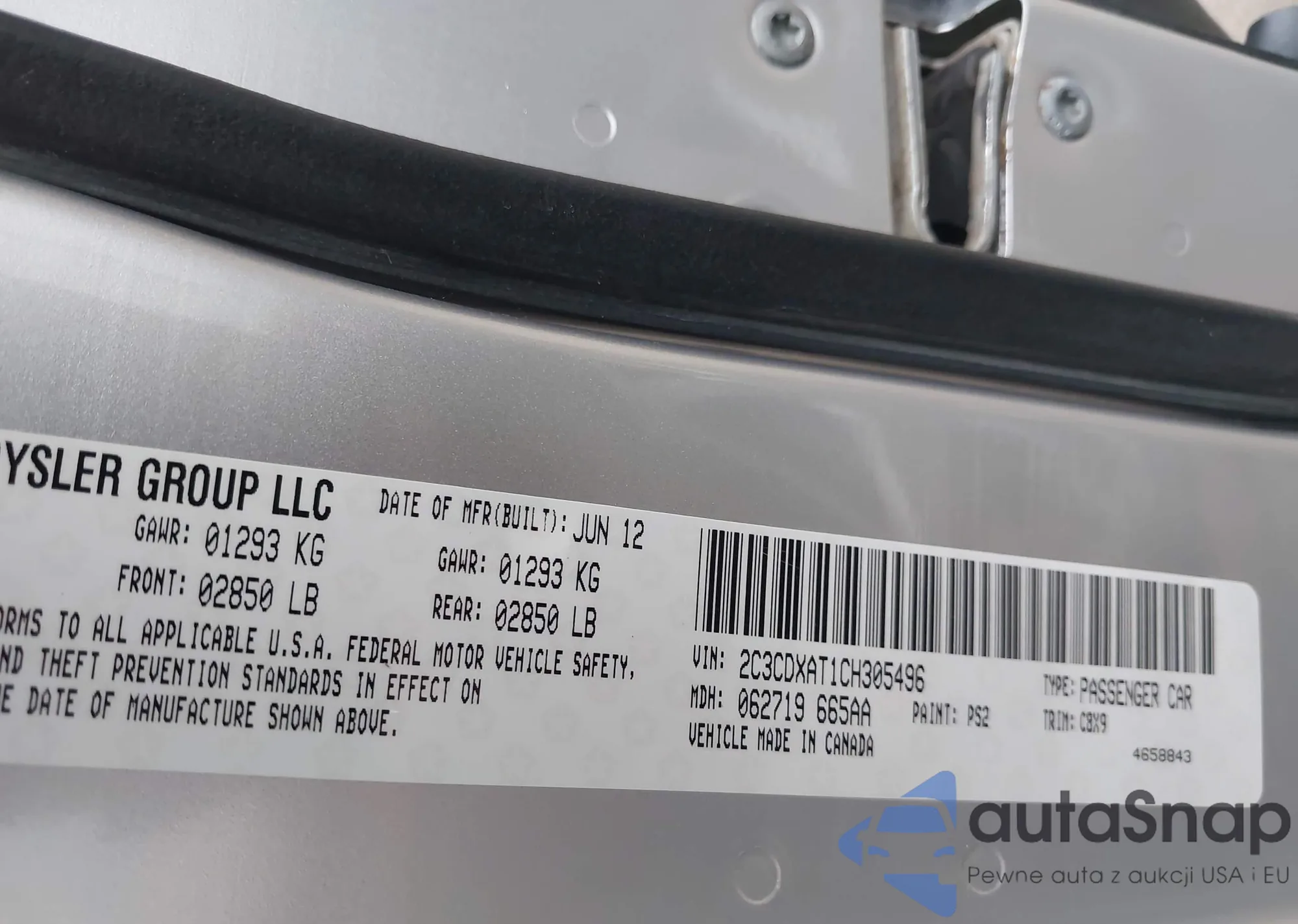 • VIN 2C3CDXAT1CH305496
