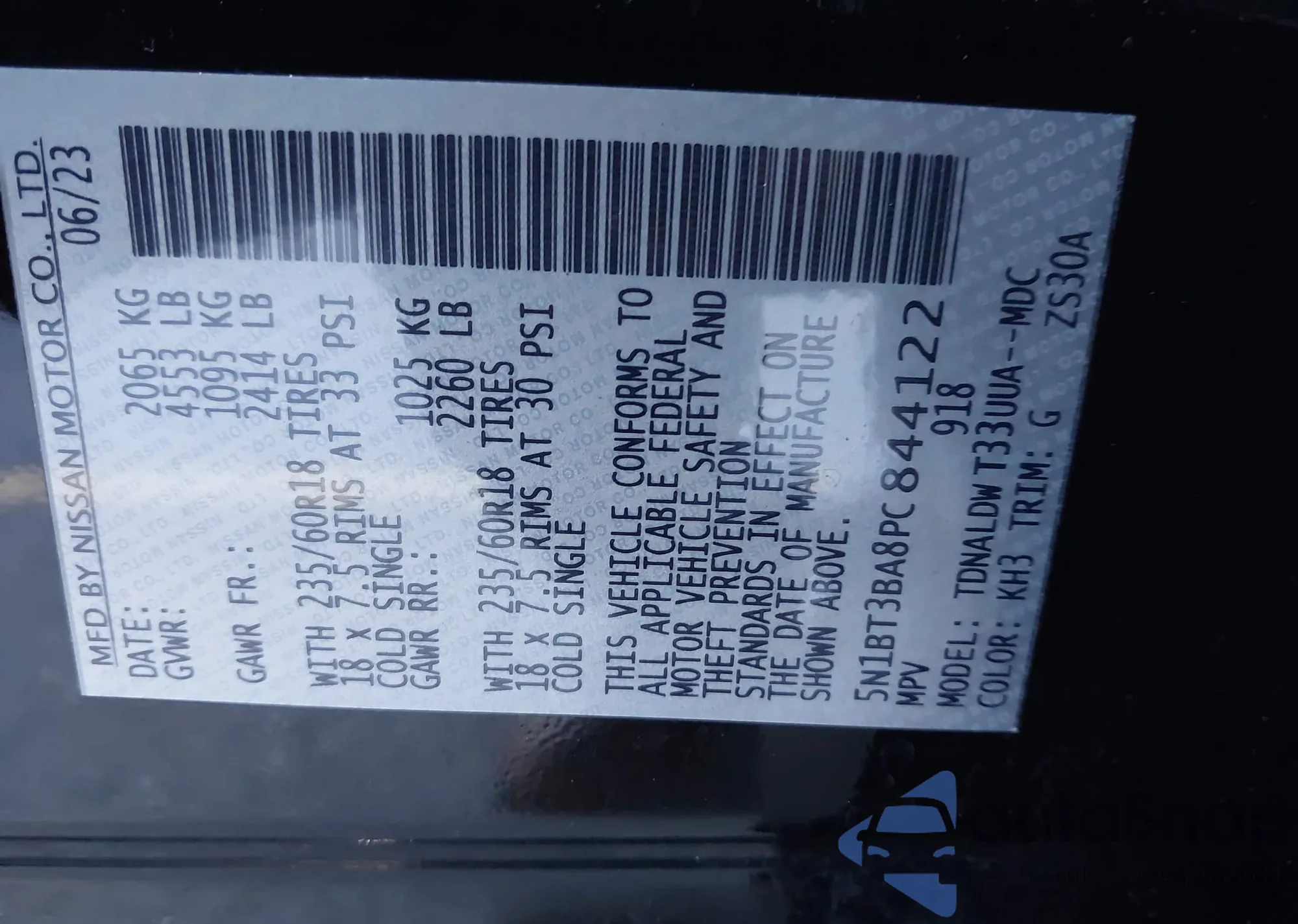 LOT: 43641799 VIN: 5N1BT3BA8PC844122