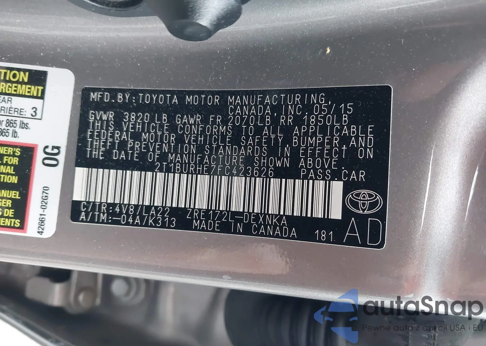 LOT: 43716931 VIN: 2T1BURHE7FC423626