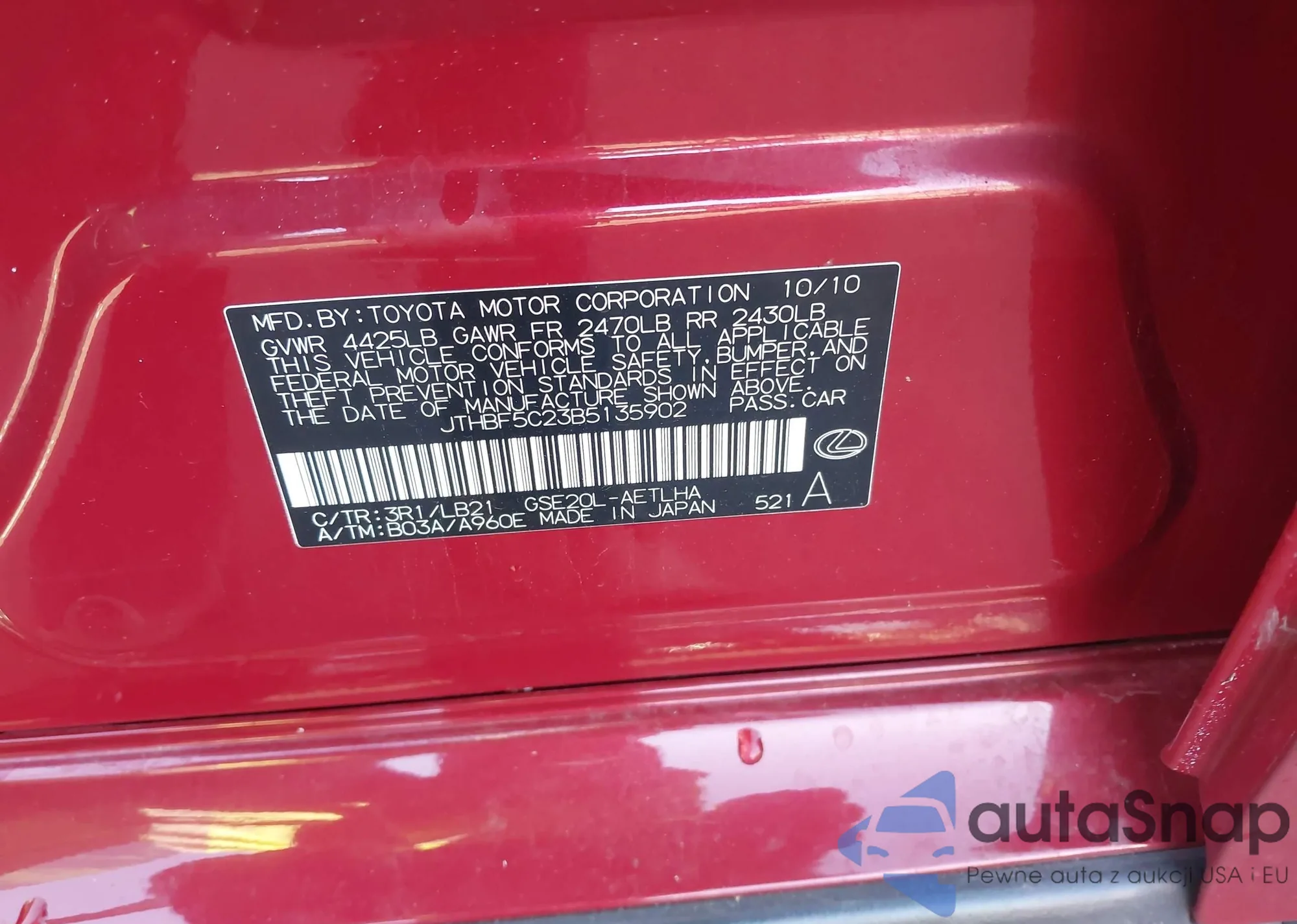• VIN 5N1BT3BA8PC844122