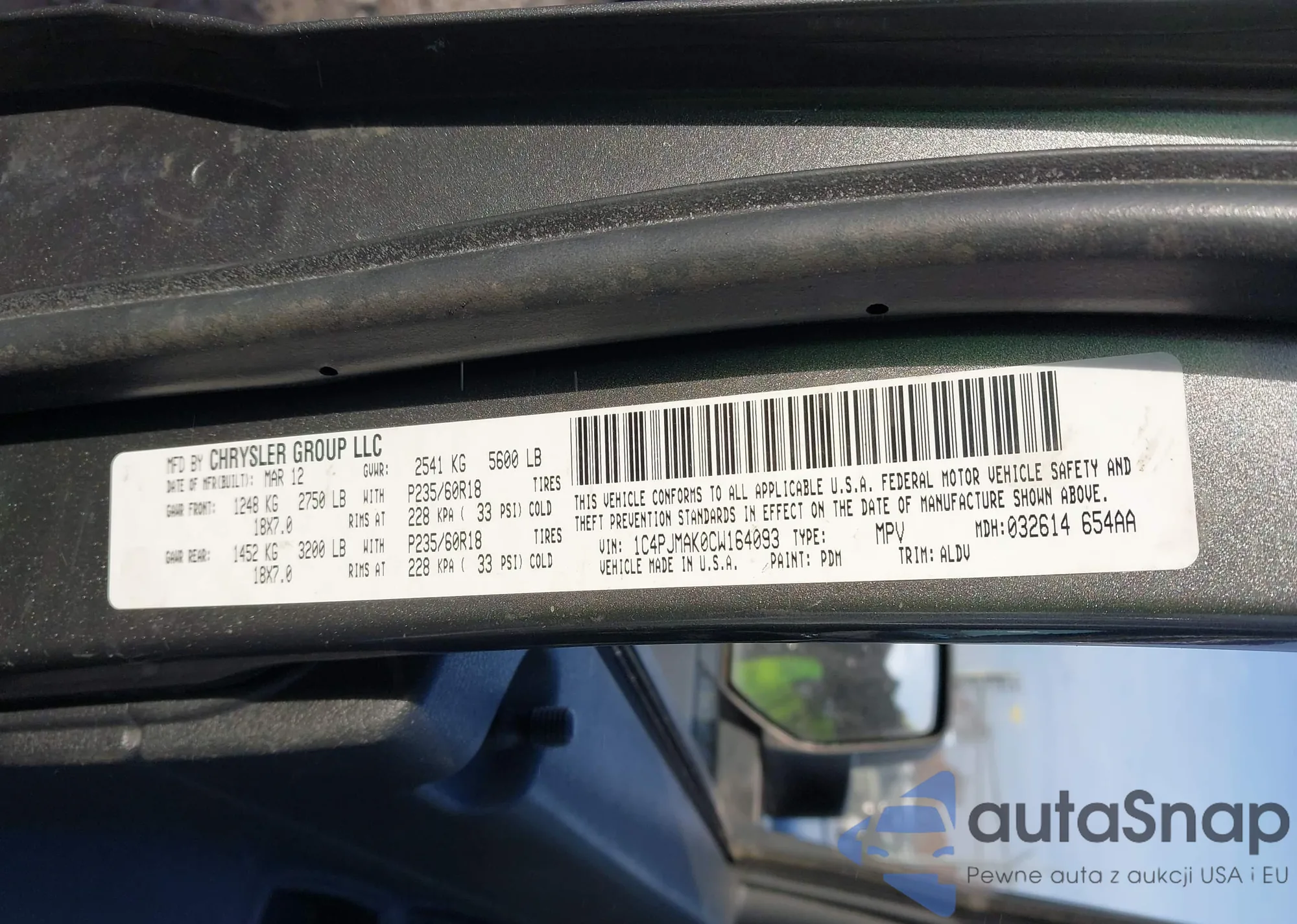 • VIN 1C4PJMAK0CW164093