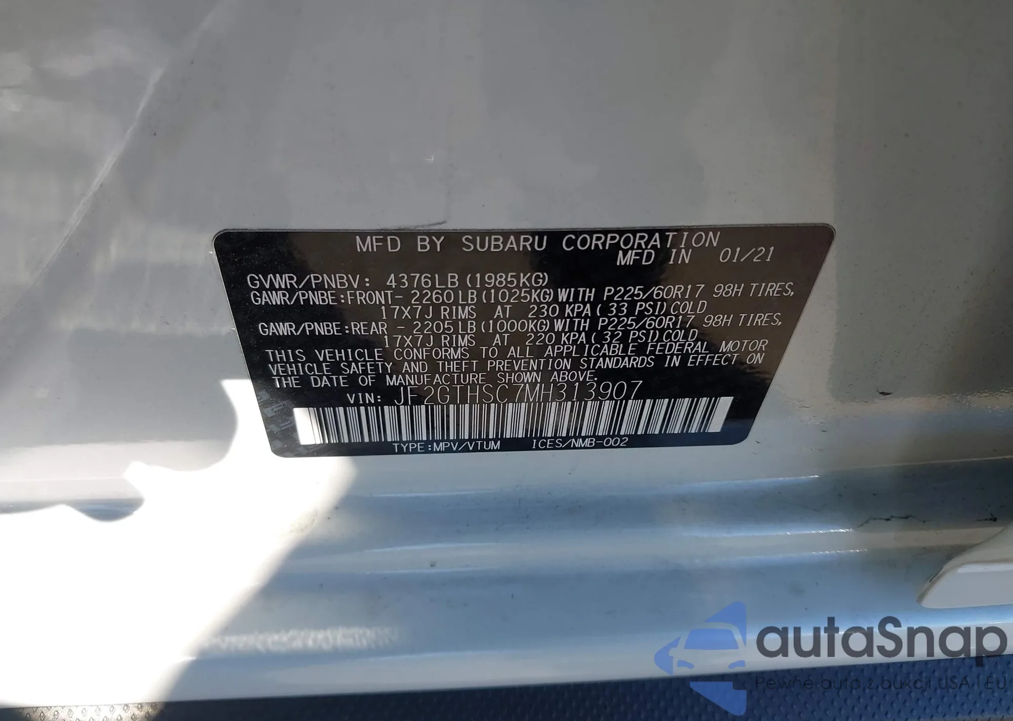 LOT: 43657305 VIN: 2C4RC1BGXMR588998