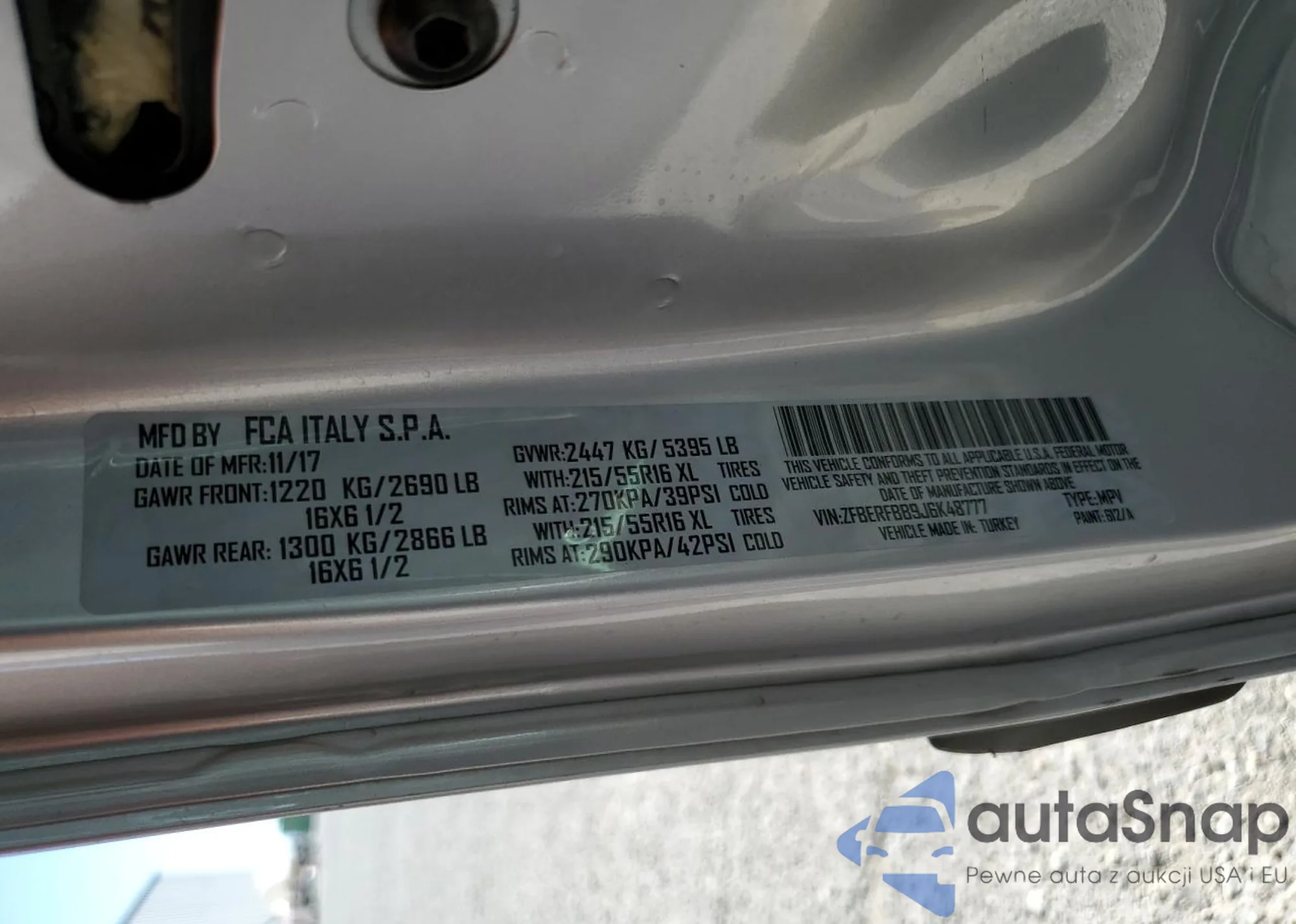 • VIN ZFBERFBB9J6K48777
