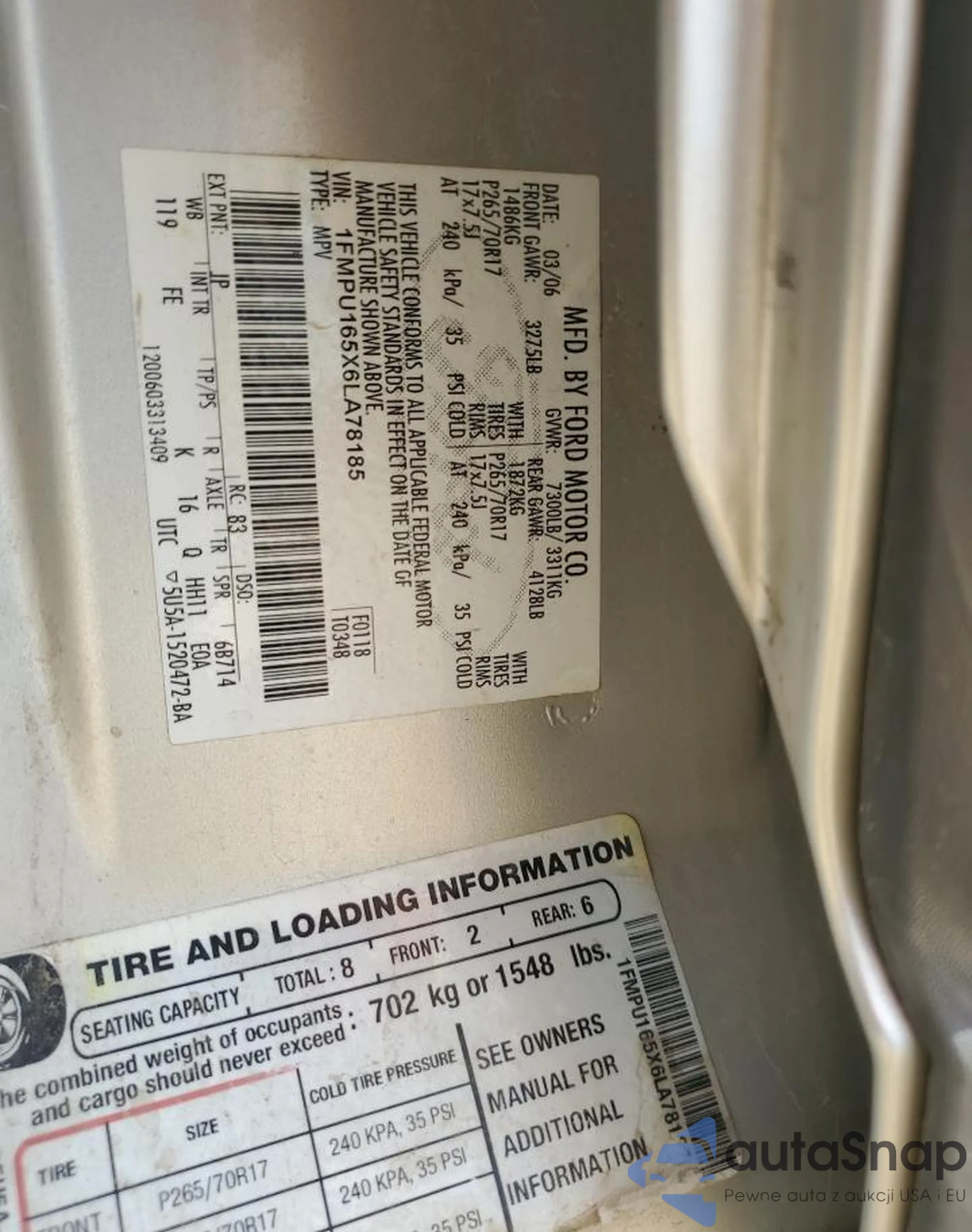 • VIN 1FMPU165X6LA78185