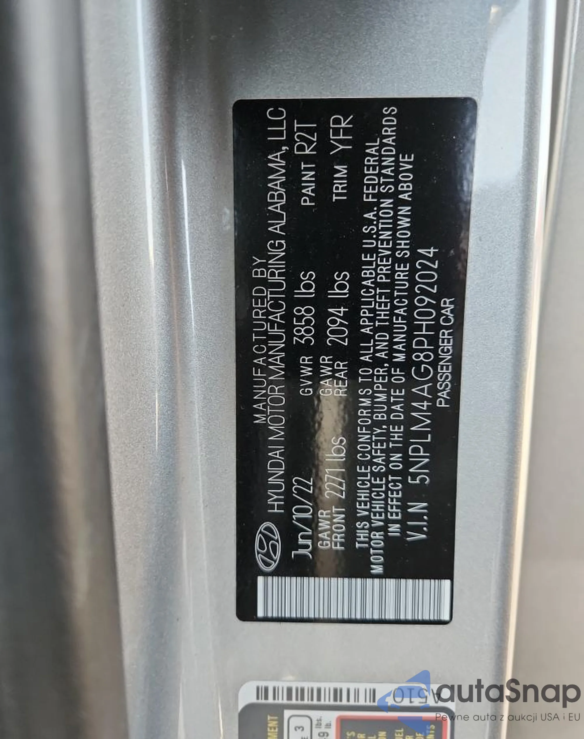 LOT: 91677605 VIN: 5NPLM4AG8PH092024