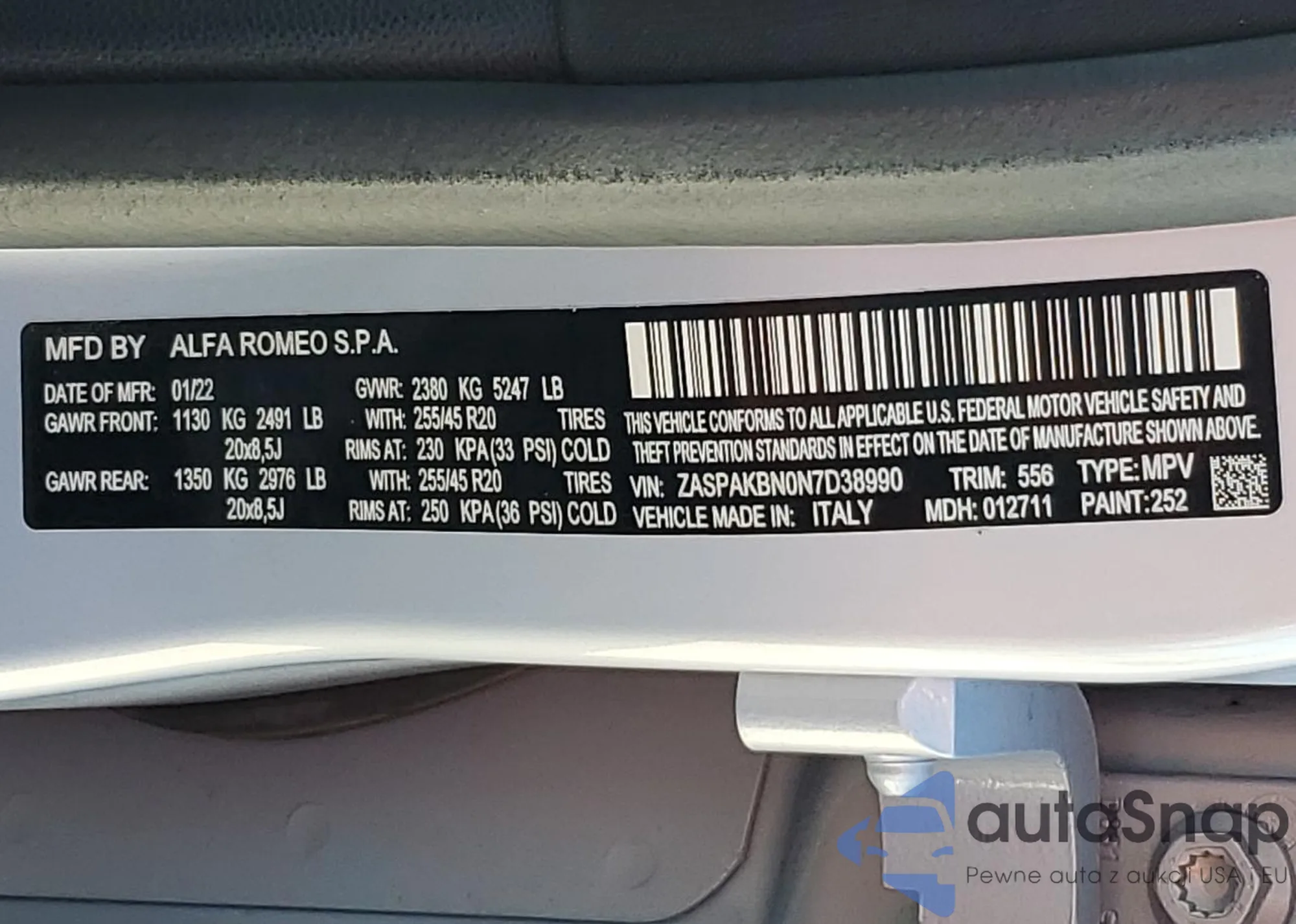 • VIN ZASPAKBN0N7D38990