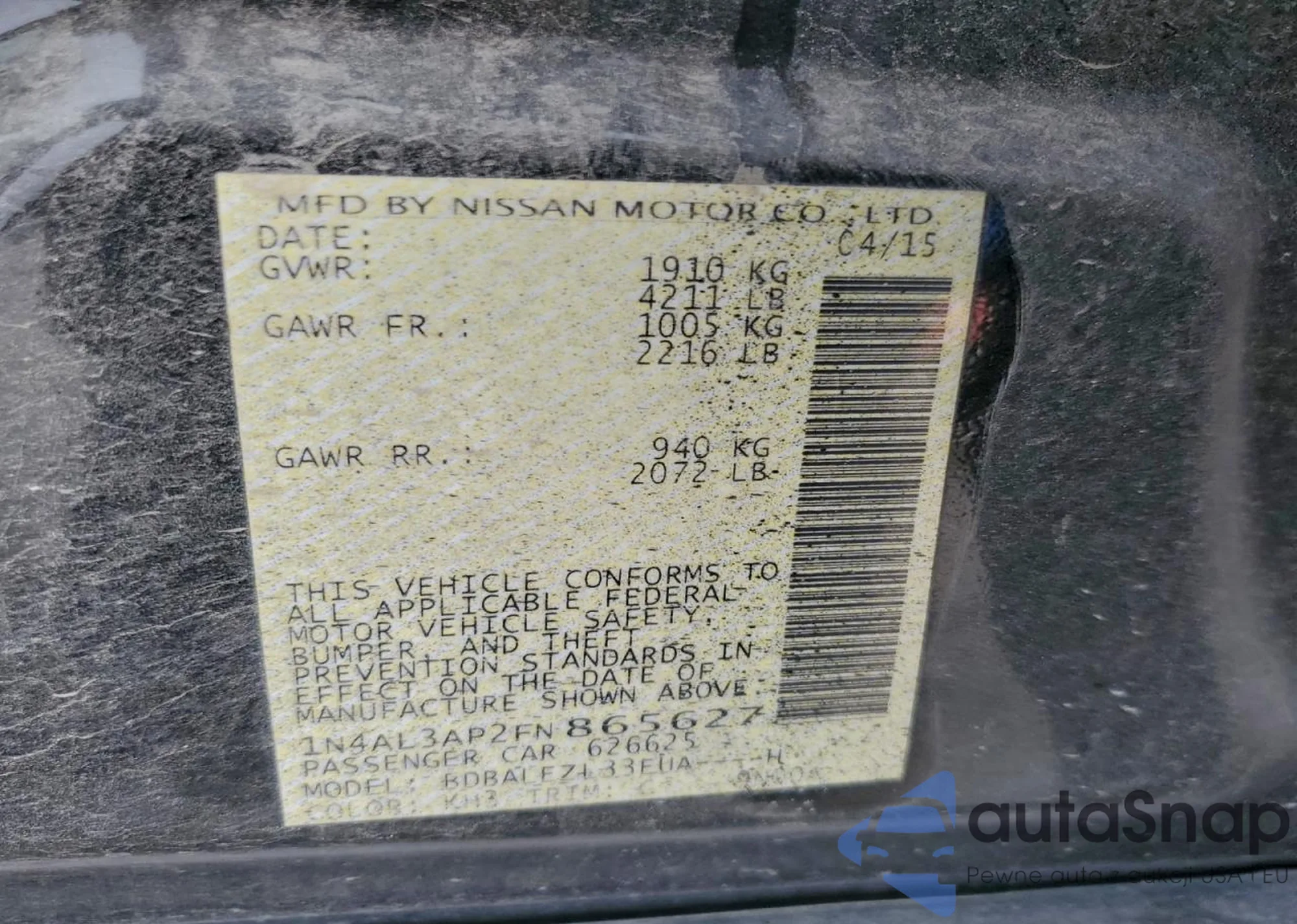 LOT: 95502645 VIN: 1N4AL3AP2FN865627