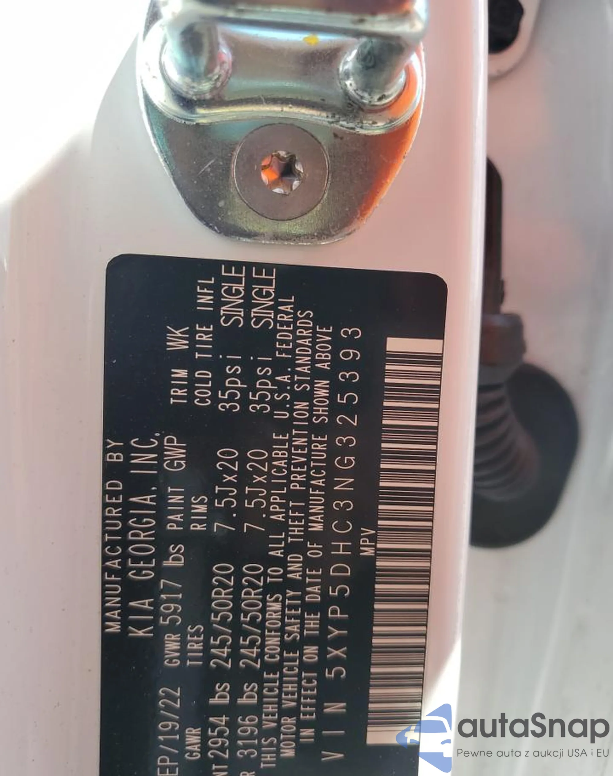 • VIN 5XYP5DHC3NG325393