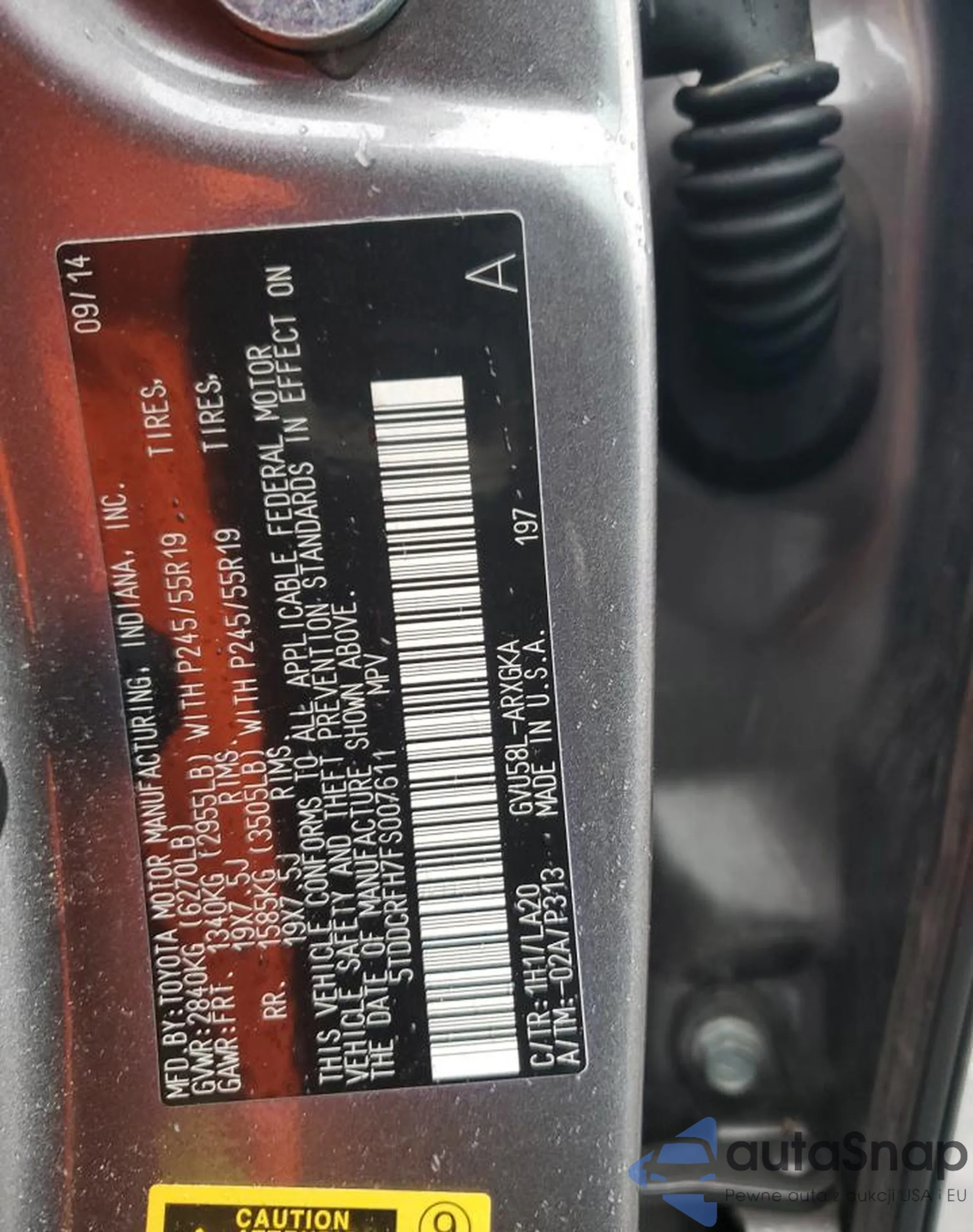 LOT: 92364185 VIN: 5TDDCRFH7FS007611
