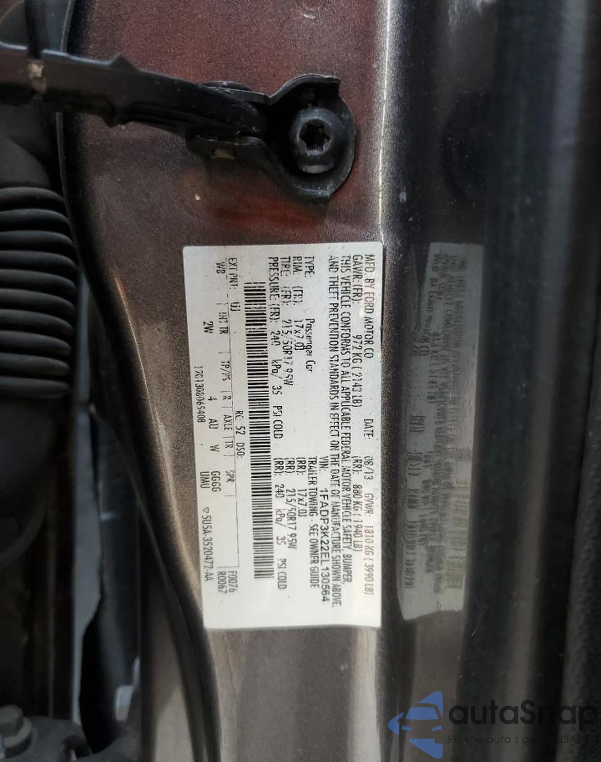 • VIN 1FADP3K22EL130564