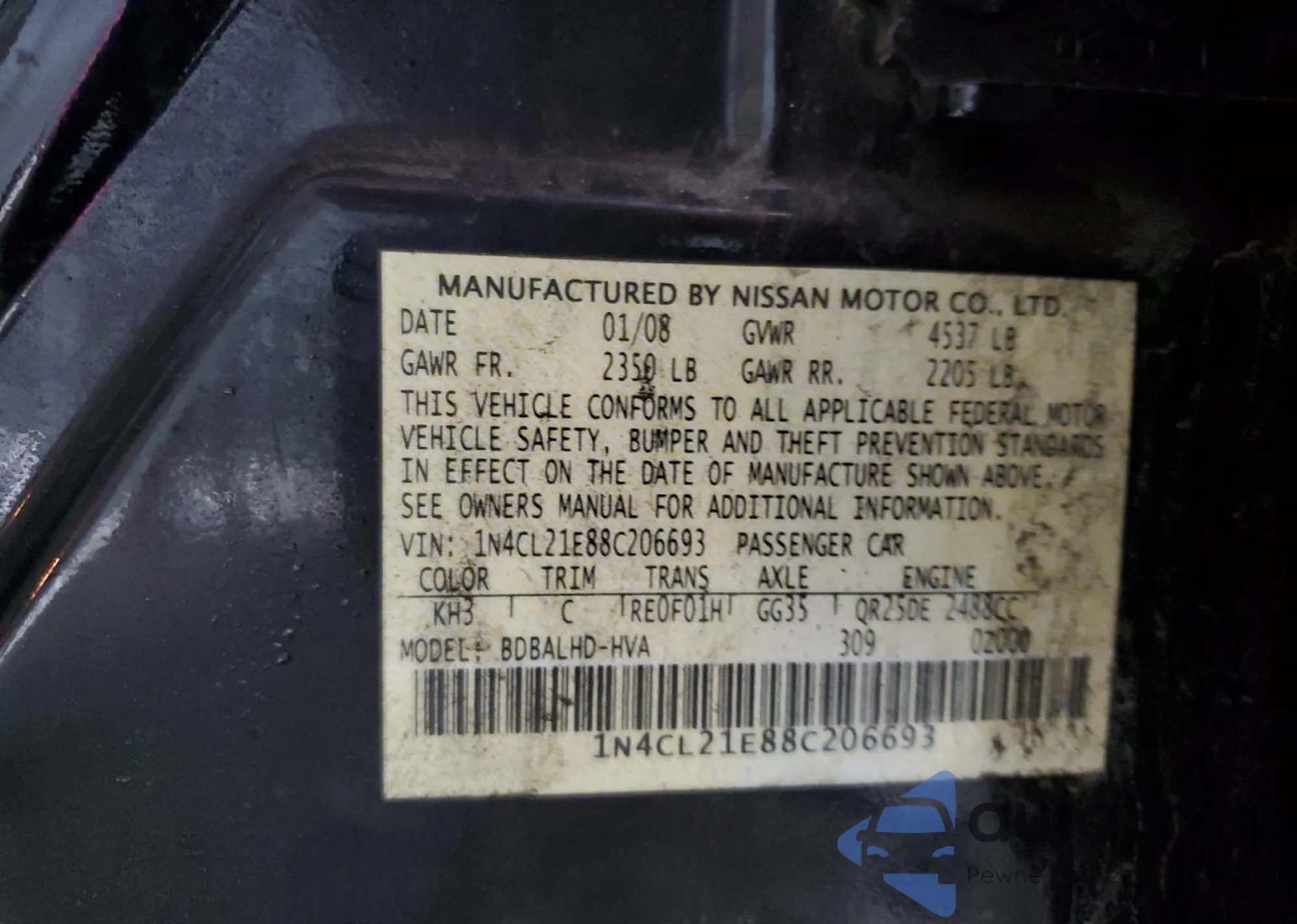 LOT: 82094875 VIN: 1N4CL21E88C206693