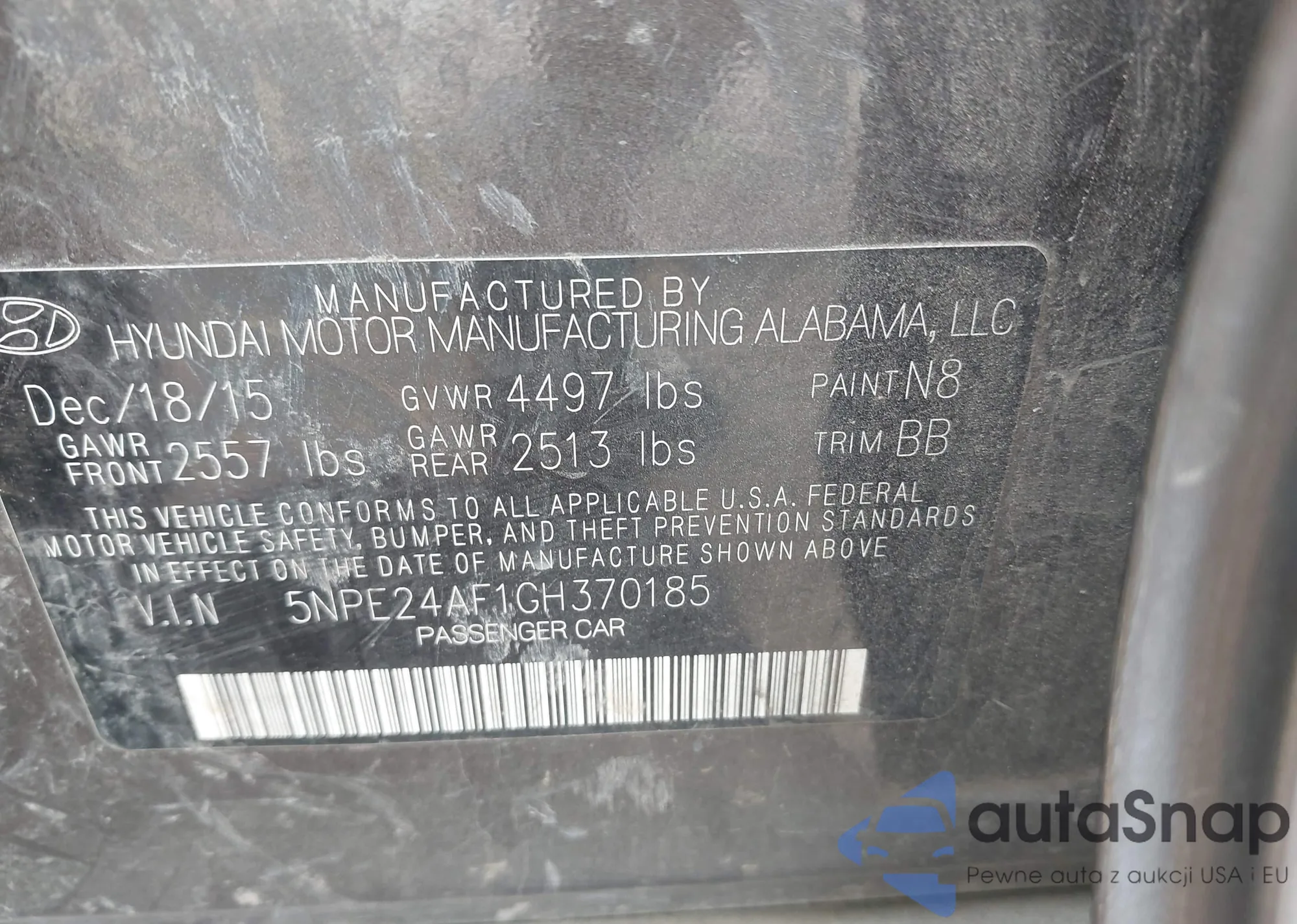 • VIN 5NPE24AF1GH370185