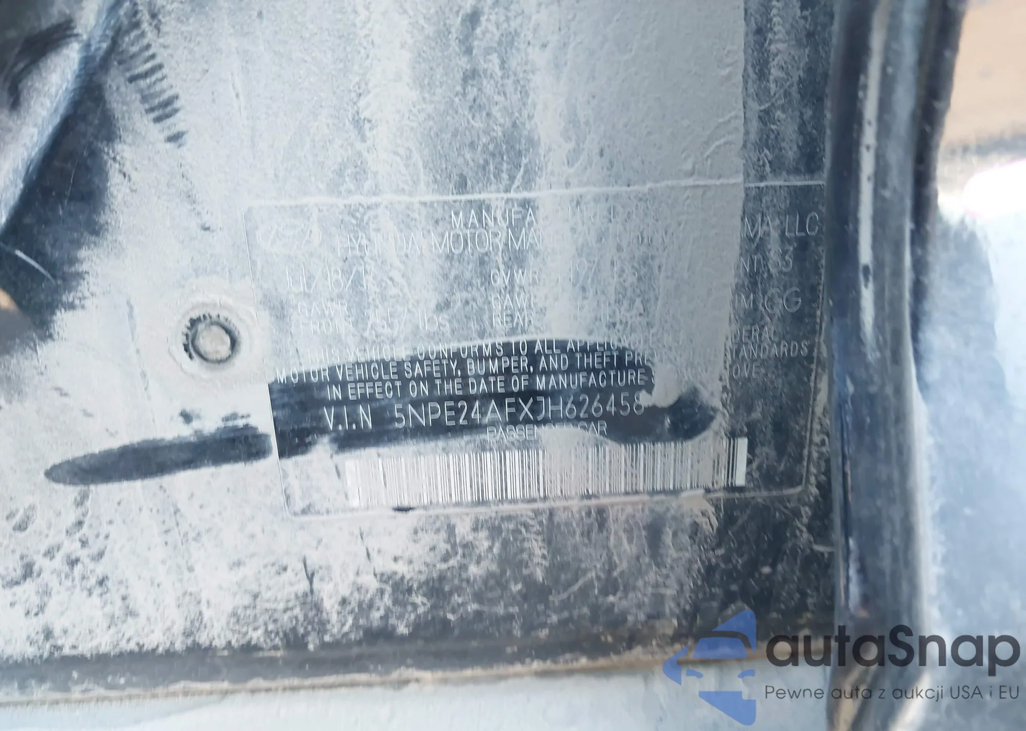 • VIN 5NPE24AFXJH626458