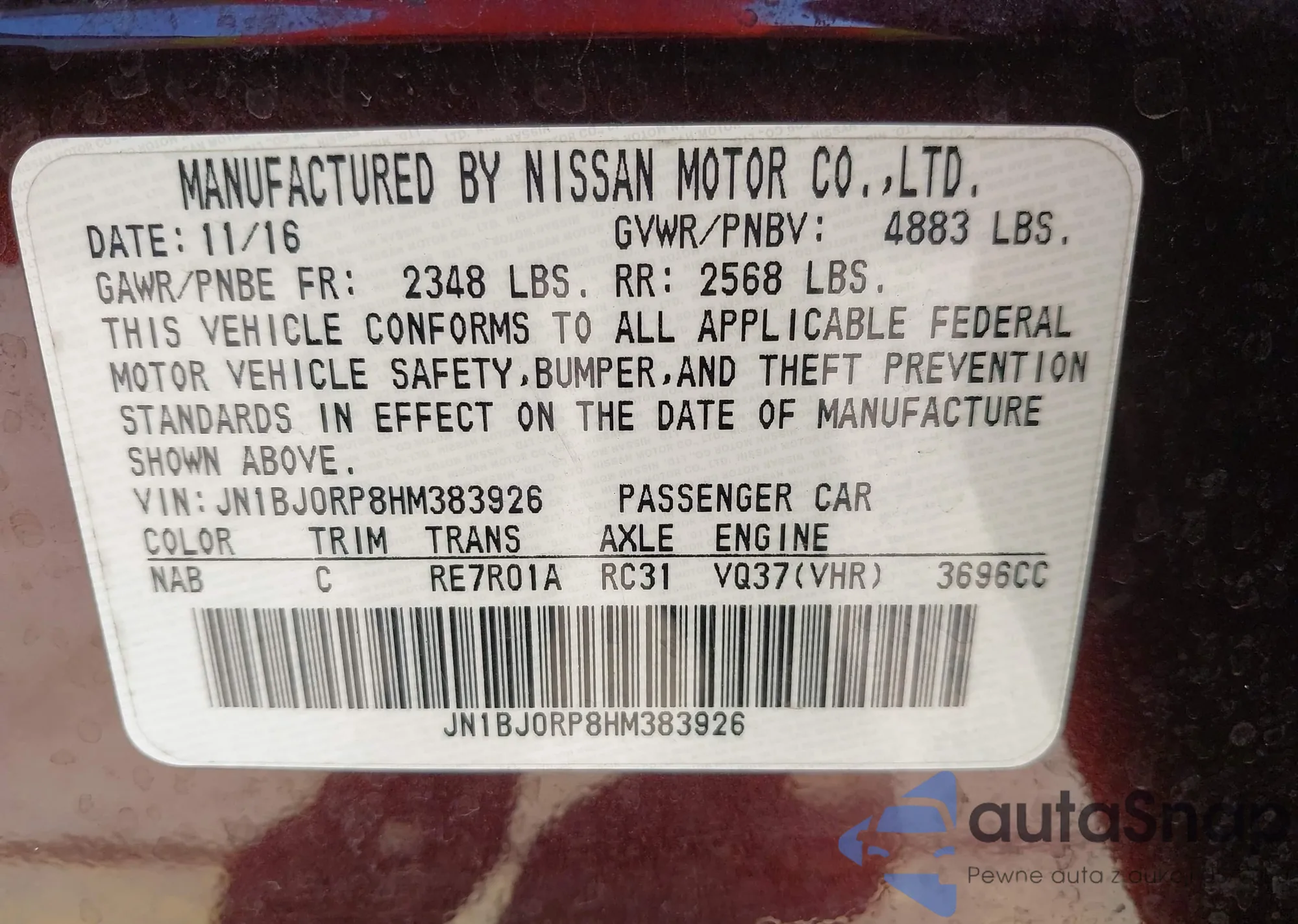 LOT: 43445716 VIN: JN1BJ0RP8HM383926