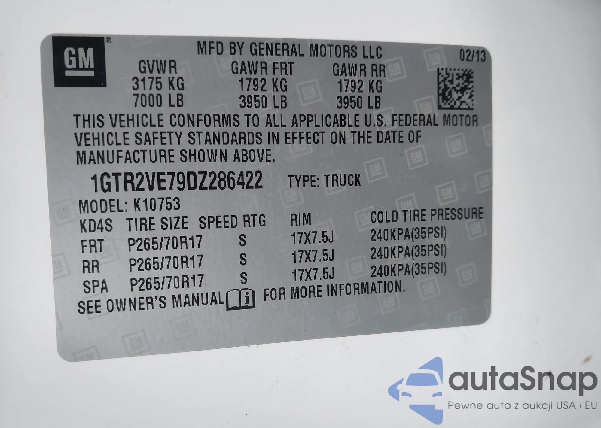 • VIN 1GTR2VE79DZ286422